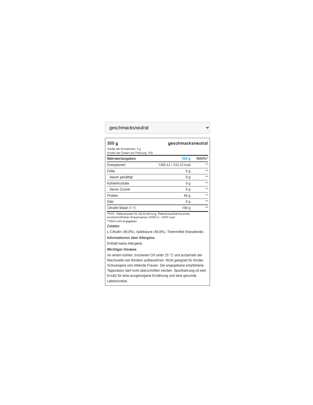 - Pulver zur Zubereitung eines Pre-Workout Getränkes mit L-Citrullin Malat unaromatisiert.