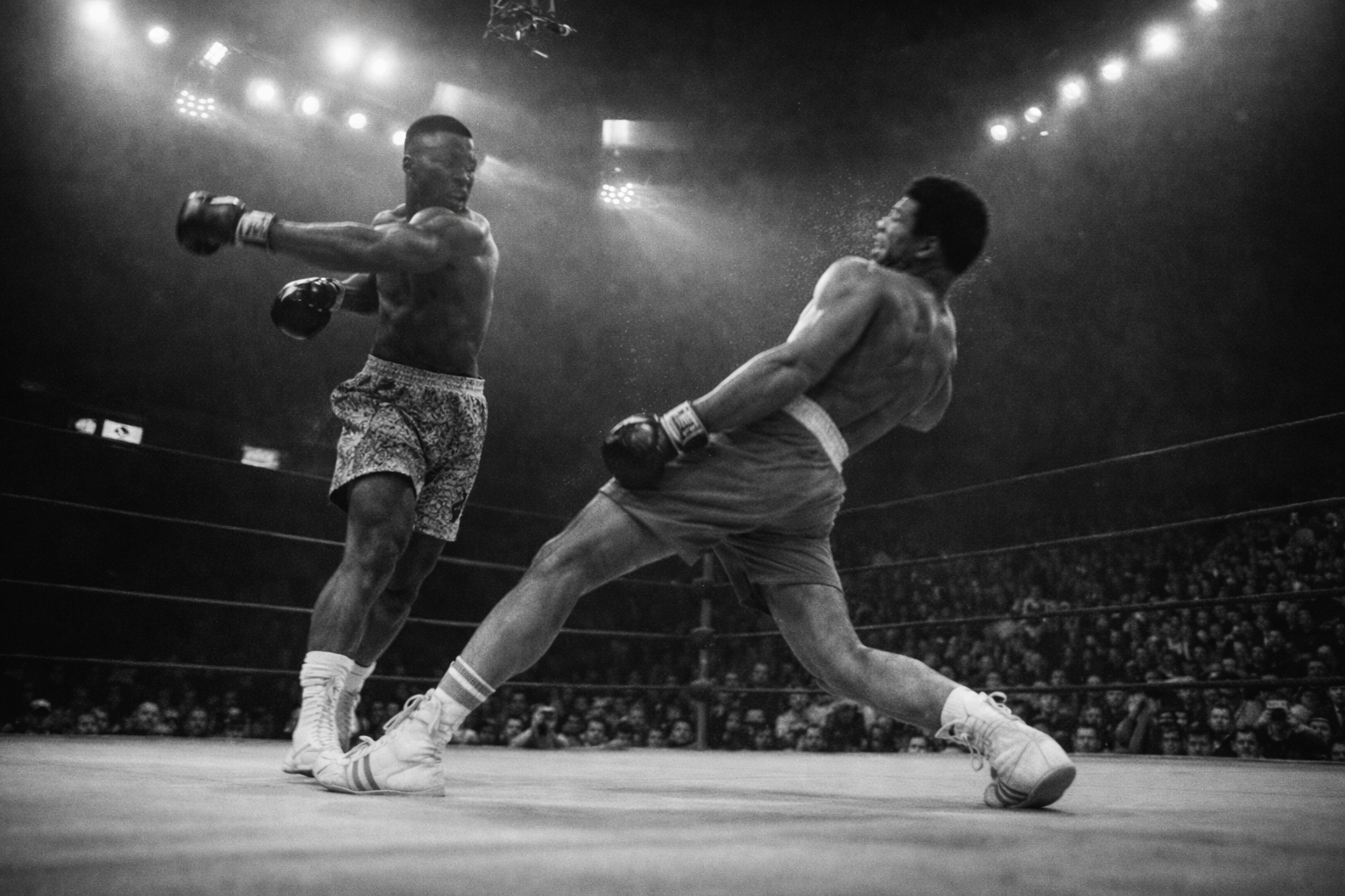 Einer dieser legendären Kämpfe war zweifellos der “Rumble in the Jungle” im Jahr 1974 zwischen Muhammad Ali und George Foreman. Der Kampf fand in Kinshasa statt und wurde von Millionen Menschen weltweit verfolgt. Ali galt als Underdog gegen den amtierenden Weltmeister Foreman - doch er bewies seine Klasse durch eine taktische Meisterleistung: Er ließ seinen Gegner anfangs angreifen um ihn später mit schnellen Schlägen zu überraschen.