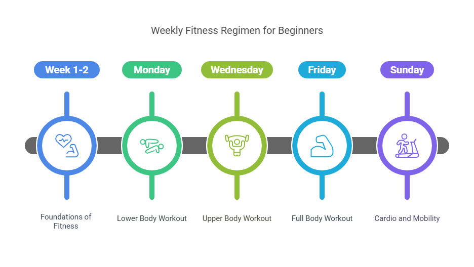 · Woche 1-2: Fokus auf Grundlagen, leichtere Gewichte, mehr Wiederholungen