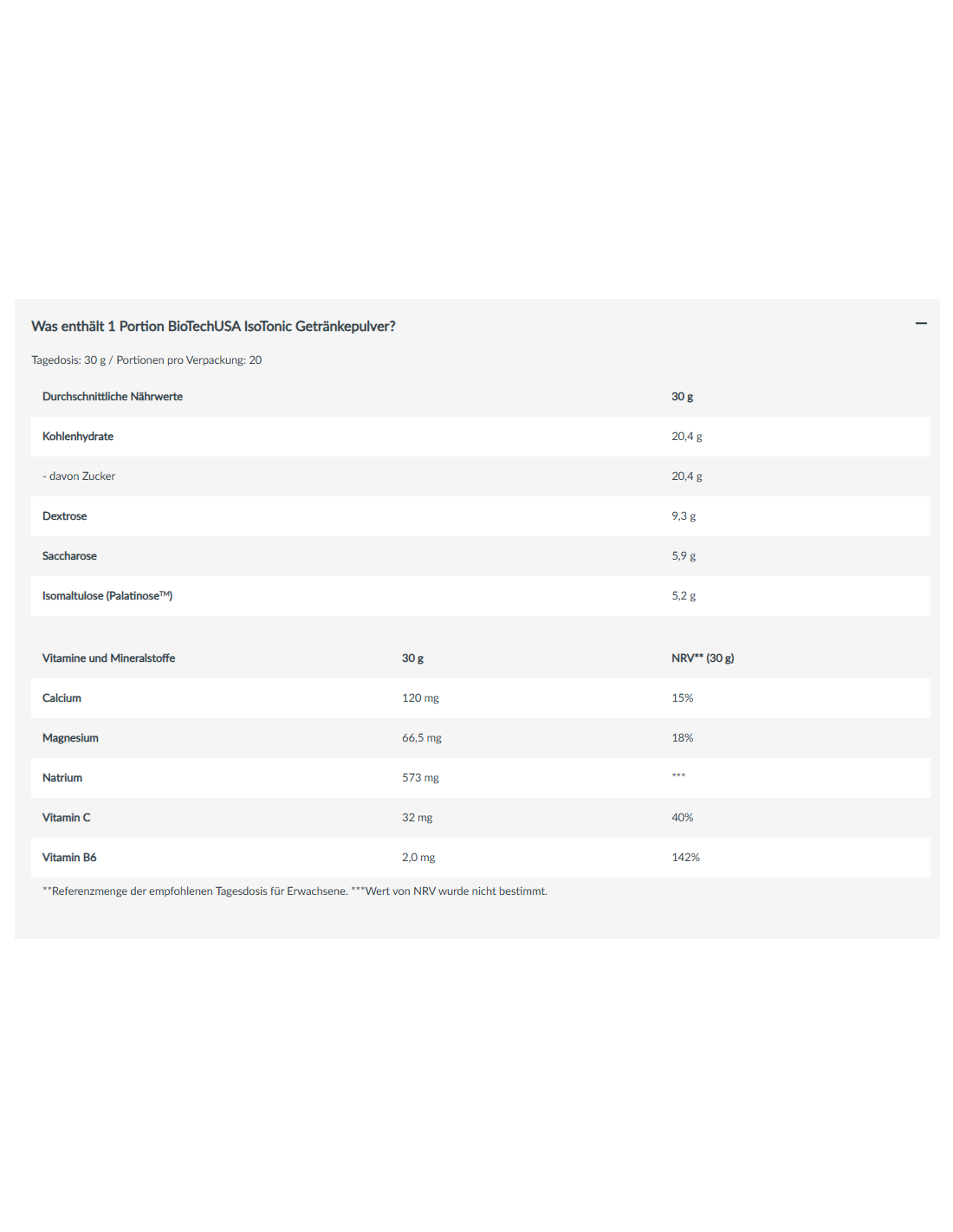 Was enthält 1 Portion BioTechUSA IsoTonic Getränkepulver?