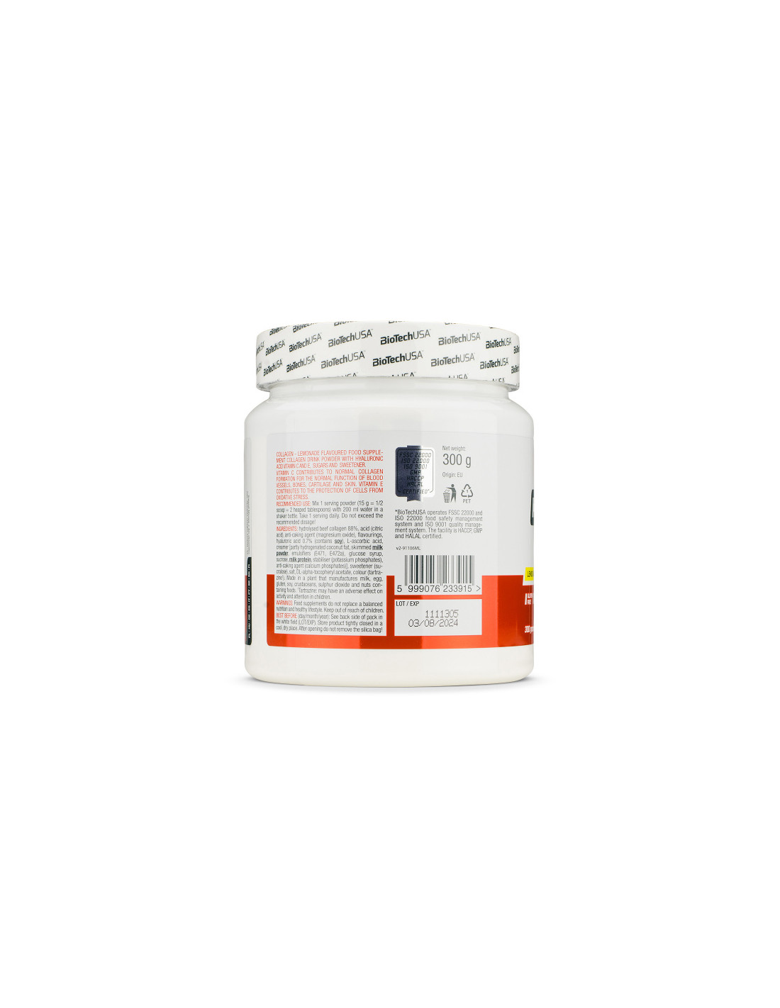 BioTechUSA Collagen liefert praktischerweise zugleich Hyaluronsäure und Collagen. Es enthält weiterhin zusätzliches Vitamin C, das die körpereigene Collagenproduktion unterstützt und letztendlich dazu beiträgt, die Gesundheit deiner Haut, Blutgefäße, Knochen, Knorpel, Zähne und deines Zahnfleischs zu erhalten. Der Vitamin-E-Gehalt des Produkts spielt eine wichtige Rolle beim Schutz der Zellen vor oxidativem Stress.