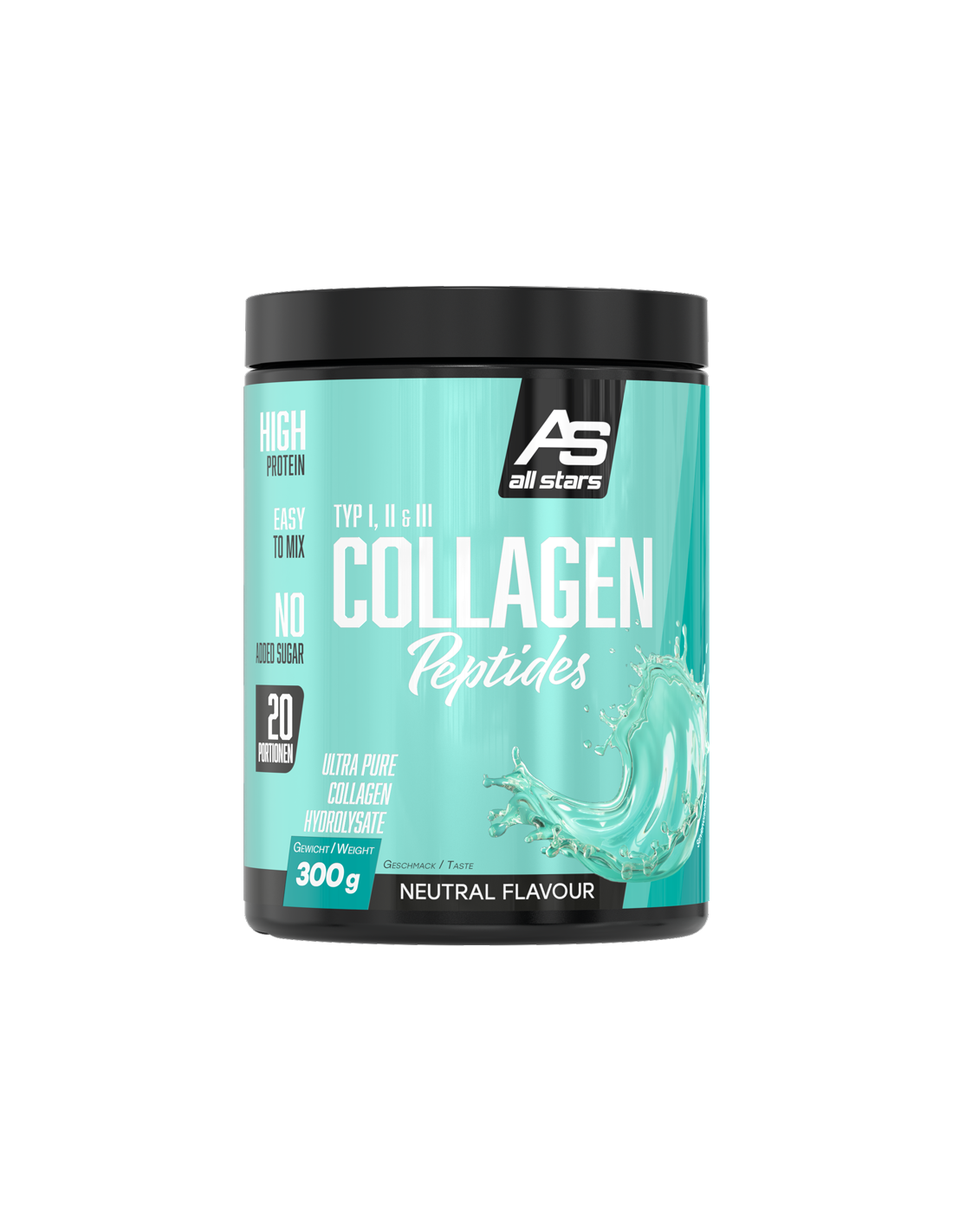 ALL STARS Collagen Peptide Pulver enthält kein Fett, keine Kohlenhydrate oder Zucker, dafür mit einem 90 %igen Anteil reichlich Eiweißbausteine (13,5 g Protein je 15 g Portion). Durch die Gewinnung aus 100% Rind ist Collagen Pulver laktosefrei. Das geschmacksneutrale Pulver kann vielfältig eingesetzt werden. Es kann über den Tag in Kalt- oder Heißgetränke eingerührt werden (Wasser, Fruchtsäfte, Tee und Kaffee), kann als Zusatz zu verschiedenen Shakes rund ums Training Verwendung finden, kann zu Joghurt, Quark oder dem morgendlichen Müsli zugefügt oder beim Backen als Proteinanreicherung eingesetzt werden. Damit liefert Collagen Peptides Pulver schnell und unkompliziert eine Proteinanreicherung im Alltag - nicht nur für Sportlerinnen.