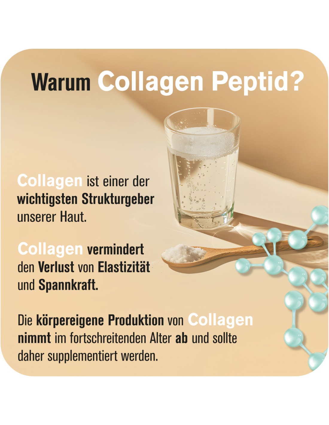 Collagen Peptid ist der Baustein für Haut, Haare, Nägel, Knochen und Gelenke. Ideal auch als schnellverfügbarer Proteinzusatz.