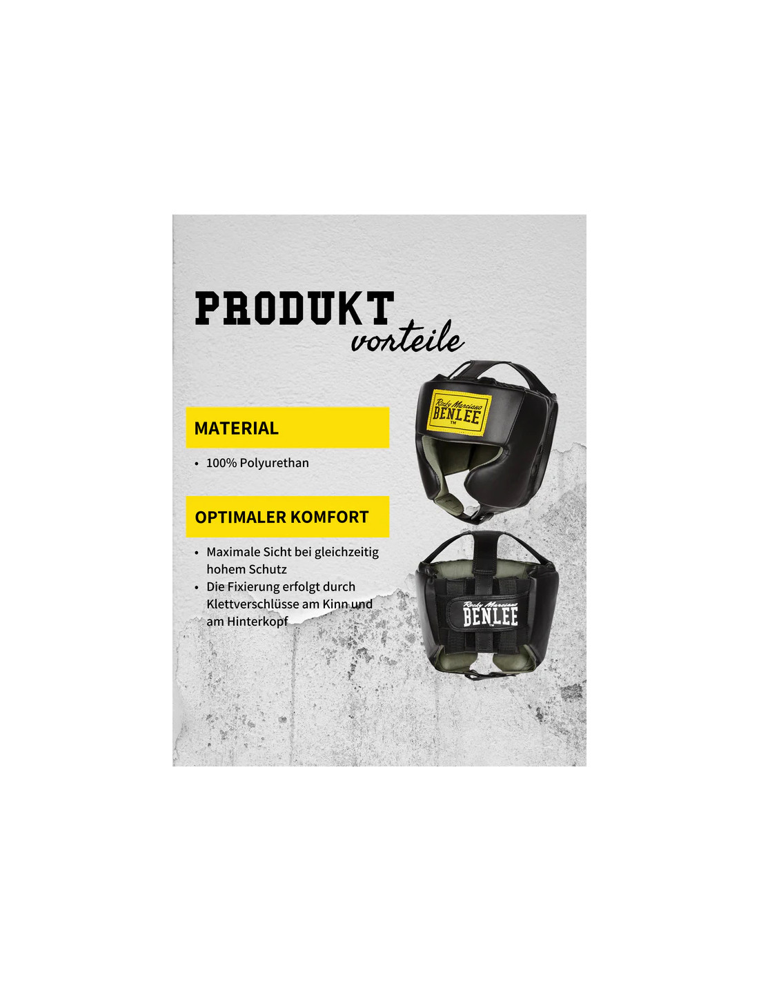 Der Benlee Kopfschutz Mike besteht aus 100% Polyurethan, einem langlebigen und strapazierfähigen Material, das für den harten Einsatz im Boxring geeignet ist. Er ist ideal für Sparringseinheiten im Gym oder für den Einsatz bei Wettkämpfen.