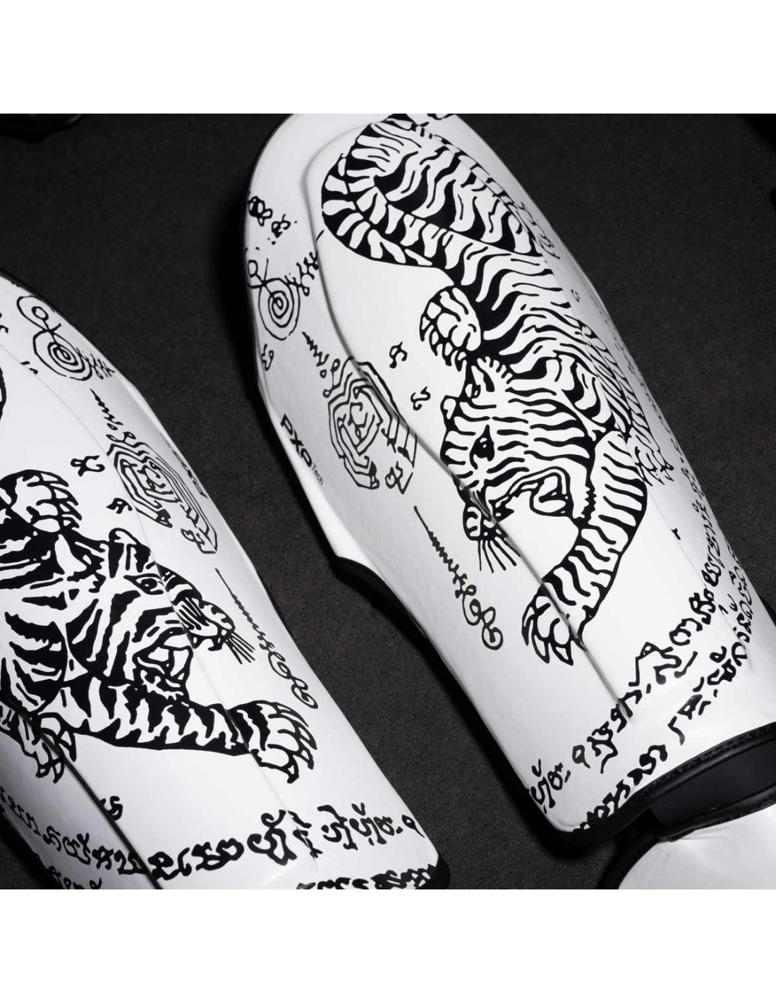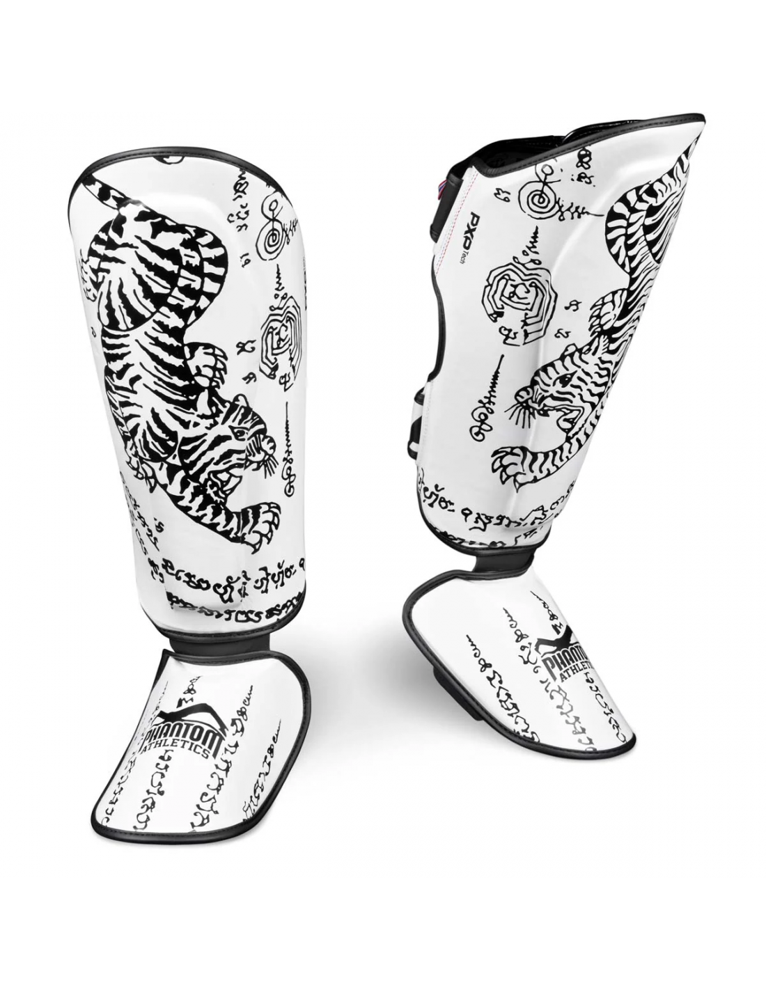 Ein besonderes Highlight ist das authentische Design, das von thailändischen Sak-Yant/Yantra Tätowierungen mit Tigern und thailändischen Schriftzeichen inspiriert ist. Der Phantom Muay Thai Schienbeinschutz vereint Funktionalität mit Stil und Tradition.