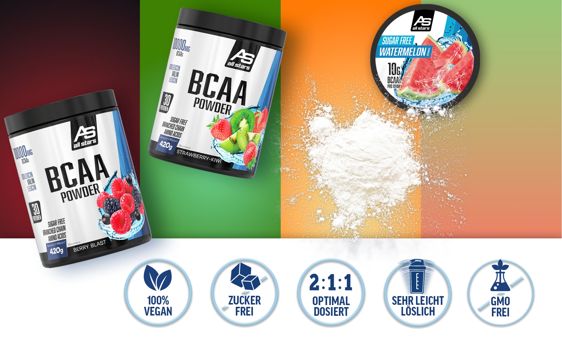 Quand il s'agit de tes objectifs d'entraînement, les acides aminés à chaîne ramifiée (BCAA) sont un facteur important pour la construction musculaire et la récupération. Ces acides aminés spéciaux - leucine, isoleucine et valine - aident ton corps à gagner de l'énergie et à maintenir la masse musculaire pendant les entraînements intensifs. Surtout en combinaison avec les acides aminés essentiels (EAA), ils peuvent considérablement améliorer les performances. Les BCAA ne sont pas seulement un excellent complément à ajouter à ton panier, ils sont également disponibles en différentes saveurs, ce qui permet à chacun de trouver son bonheur. Ils sont parfaits pour ceux qui suivent un régime végétalien, car de nombreux produits utilisent des sources végétales. Assure-toi de choisir une poudre de protéines de haute qualité qui est bien tolérée et qui répond à tes besoins pendant l'entraînement. Avec les BCAA, tu peux optimiser la récupération après l'entraînement et profiter plus rapidement de tes succès. Opte pour la qualité et trouve le produit qui te convient le mieux !