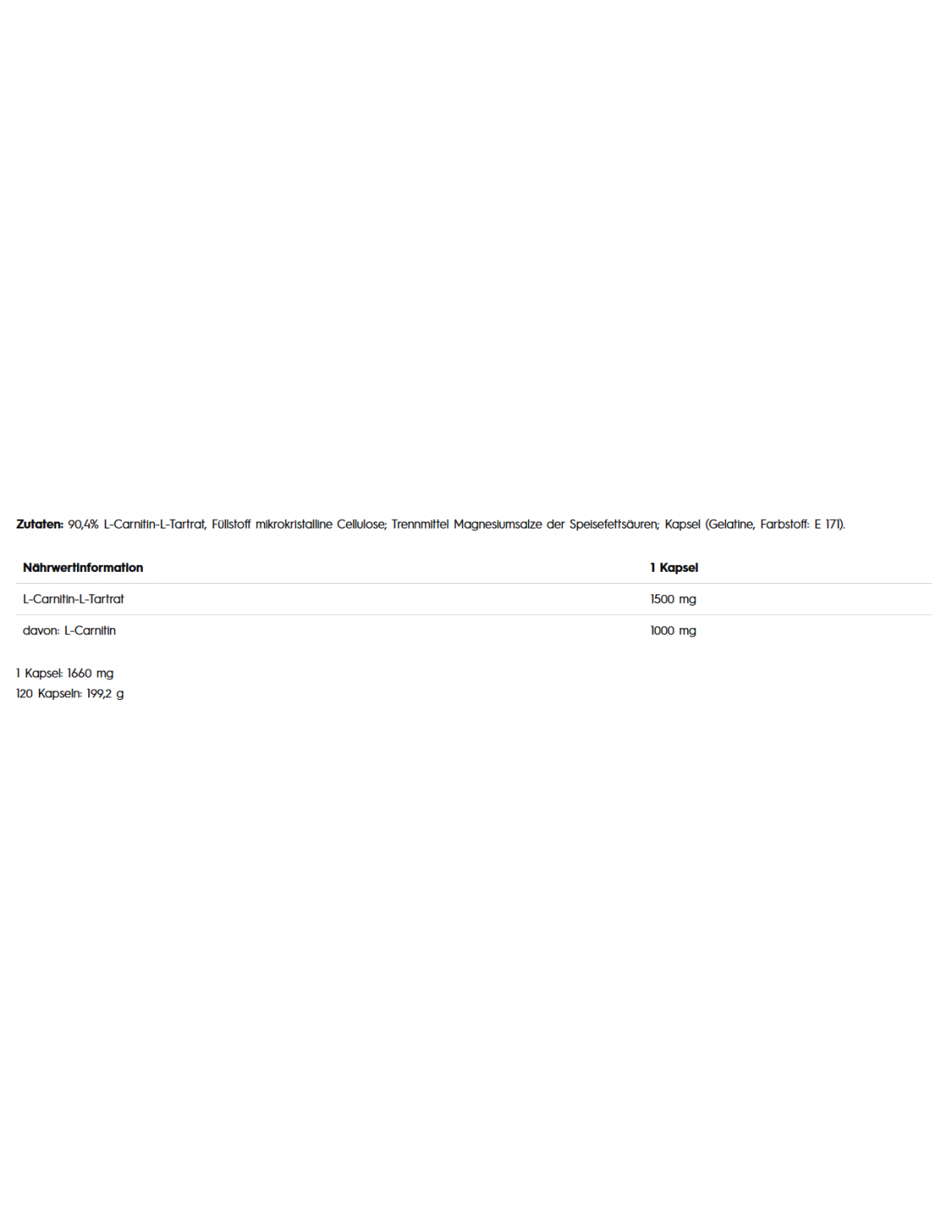 • 1500 mg de L-Carnitine sous forme de tartrate dans 1 capsule de Mega Caps