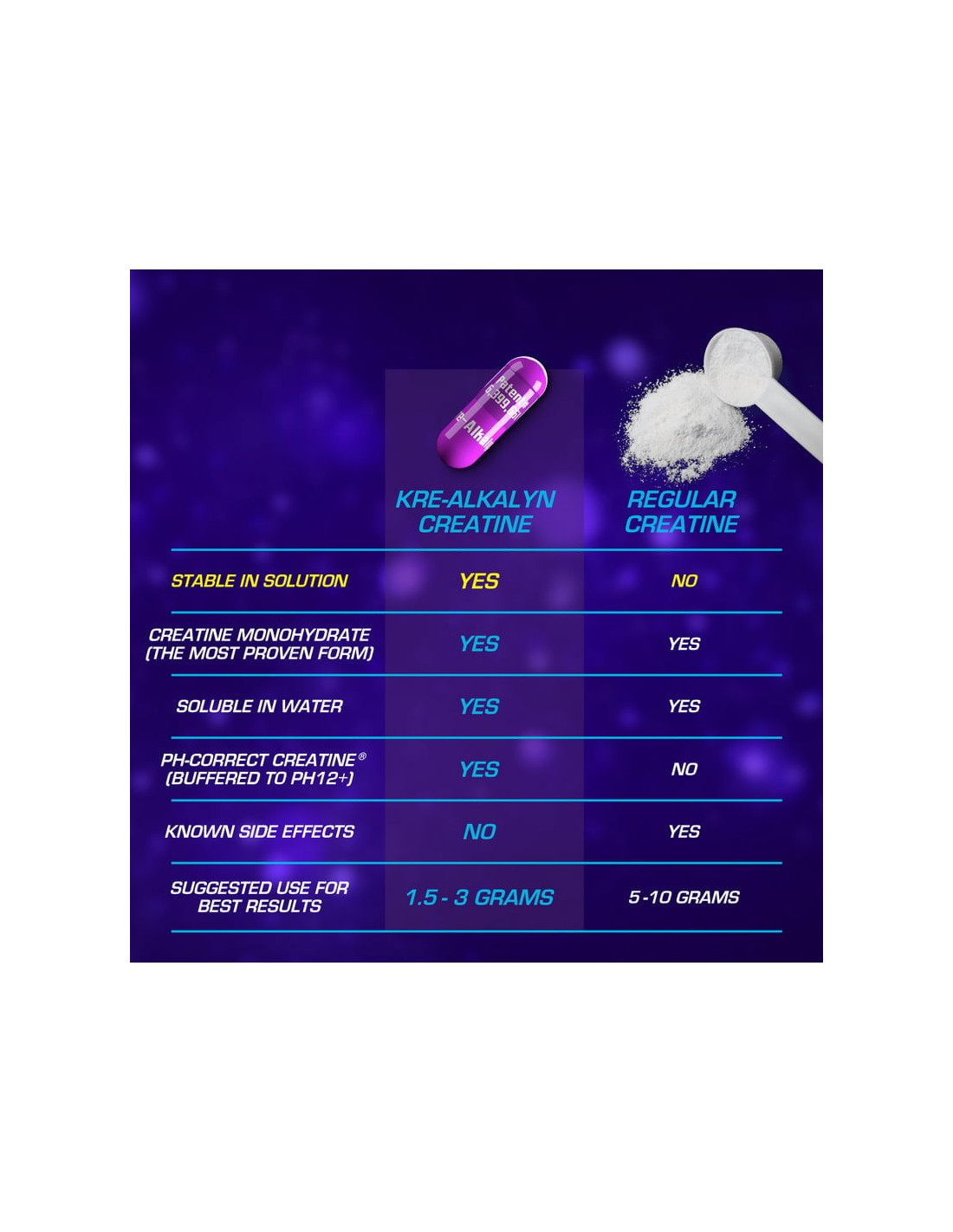 - Kre-Alkalyn EFX Creatine : prouvé dans une étude clinique qu'il fournit 28% de force en plus que la créatine monohydrate normale !