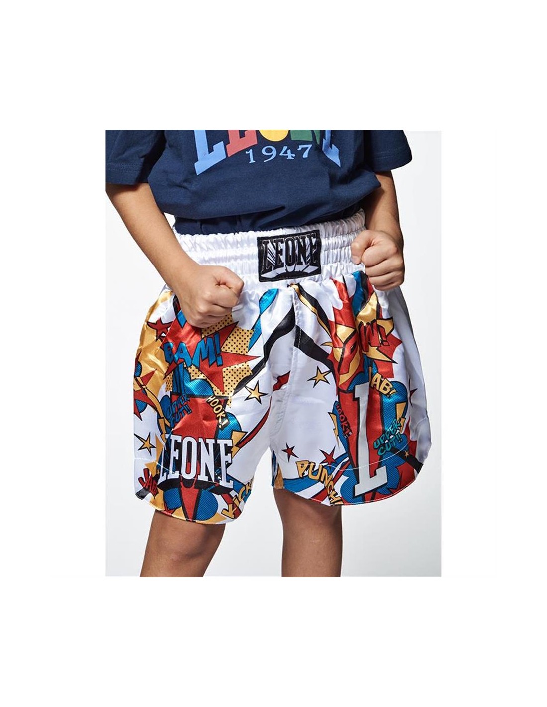 Découvre les pantalons Leone Hero Thai pour enfants, parfaits pour les petits kickboxeurs et les champions de Muay Thai ! Ces pantalons sont composés à 100% de satin de haute qualité et sont disponibles en deux couleurs passionnantes. Le design unique de la bande dessinée leur confère un look cool. Avec leur taille élastique, ils sont confortables et offrent un ajustement optimal.