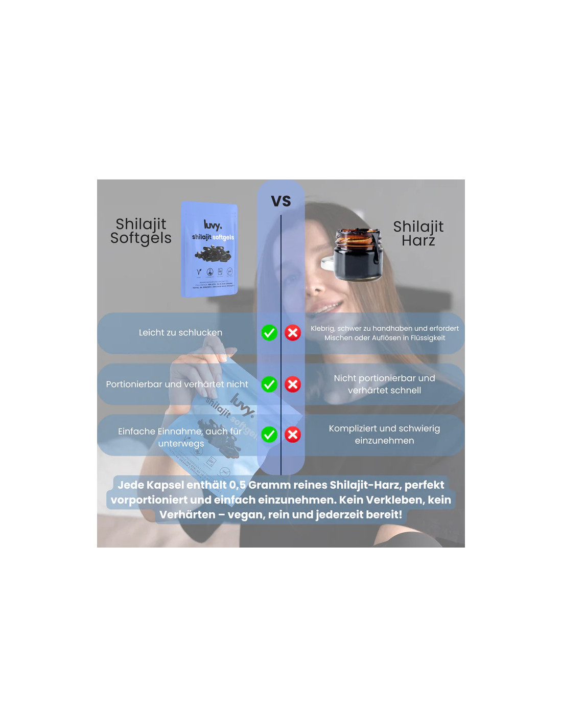 N'attendez plus ! Procurez-vous vos gélules molles LUVY Shilajit dès maintenant et découvrez les bienfaits de ce complément alimentaire unique. Vous méritez de vous sentir plein d'énergie et de vitalité ! Visitez notre boutique en ligne et commencez dès aujourd'hui votre parcours vers une meilleure santé et une meilleure forme physique !