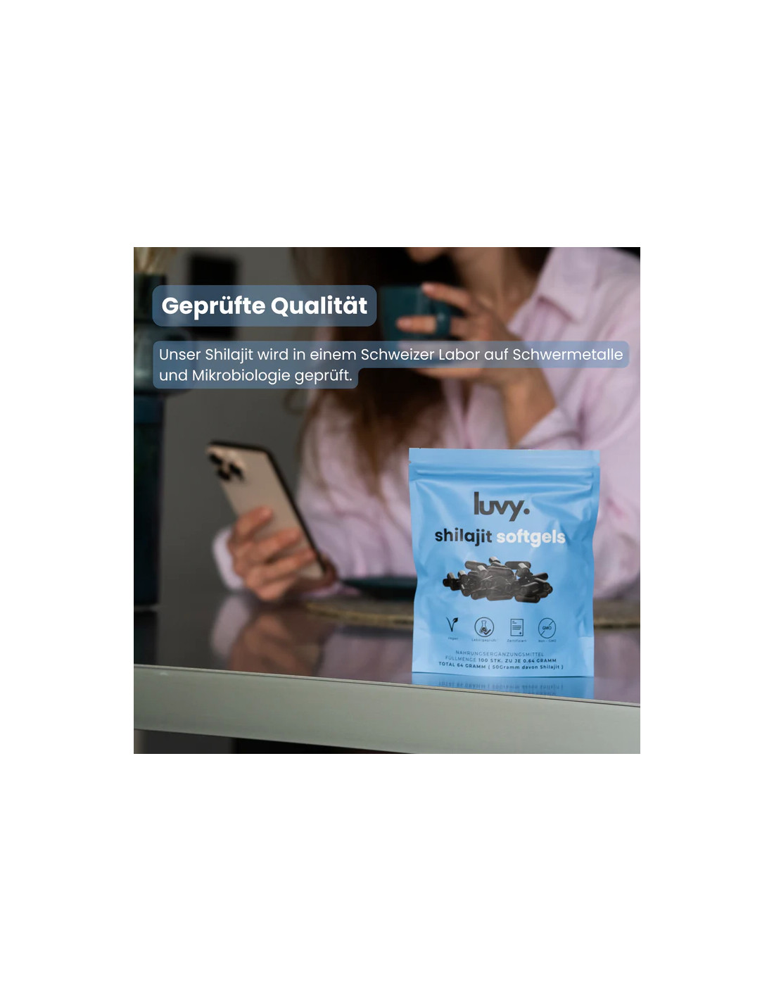 La particularité de nos capsules molles Shilajit ? Elles proviennent de l'Himalaya, à des altitudes comprises entre 4 000 et 4 500 mètres d'altitude. C'est ici qu'est extraite la précieuse résine de Shilajit, un produit naturel apprécié en médecine traditionnelle depuis des siècles. Nos gélules sont véganes, testées en laboratoire en Suisse et se caractérisent par leur haute biodisponibilité. Votre corps peut ainsi absorber ces précieux nutriments rapidement et efficacement.