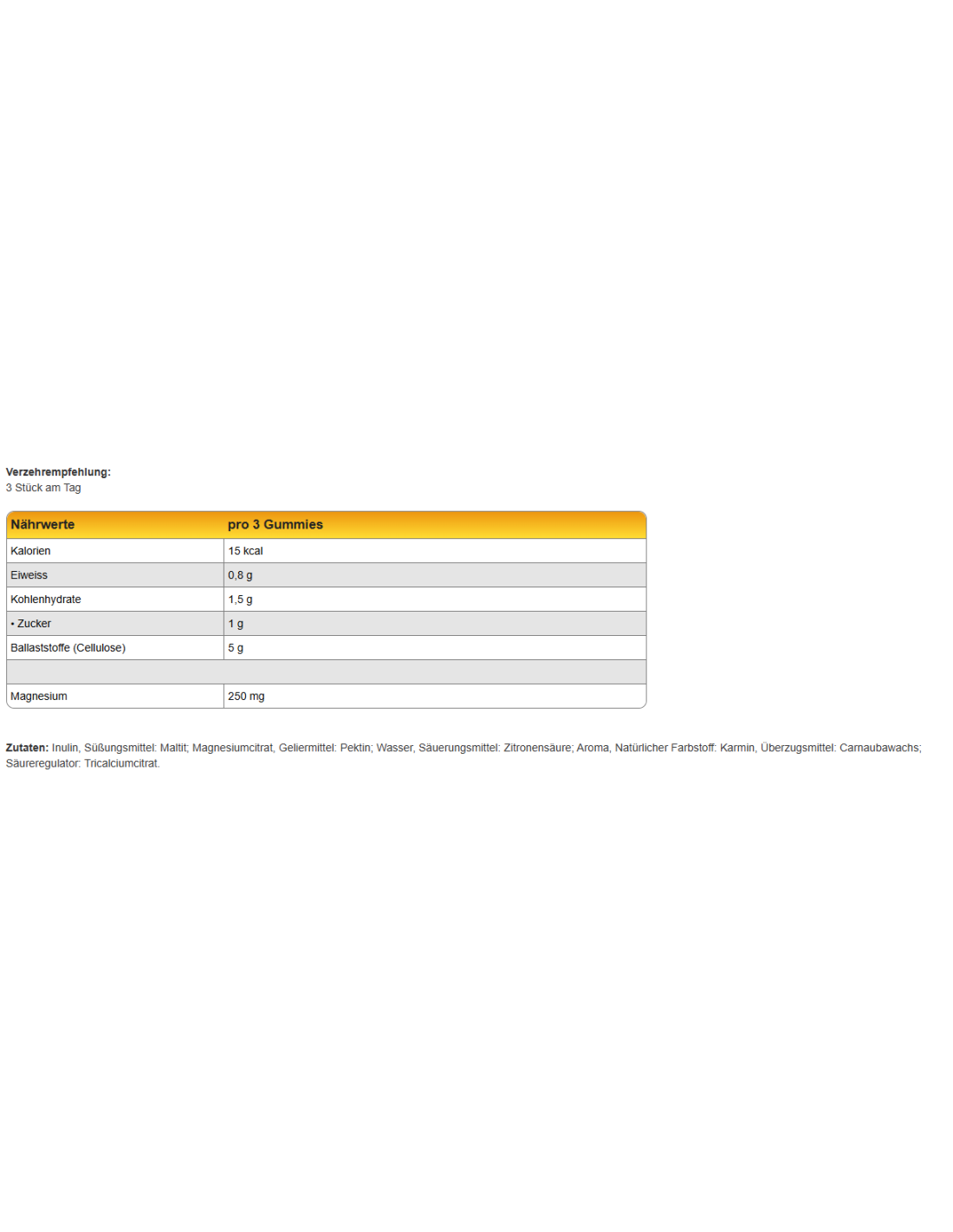 À partir d’une dose quotidienne de 250 mg : Les suppléments de magnésium peuvent avoir un effet laxatif. - Désignation de la matière