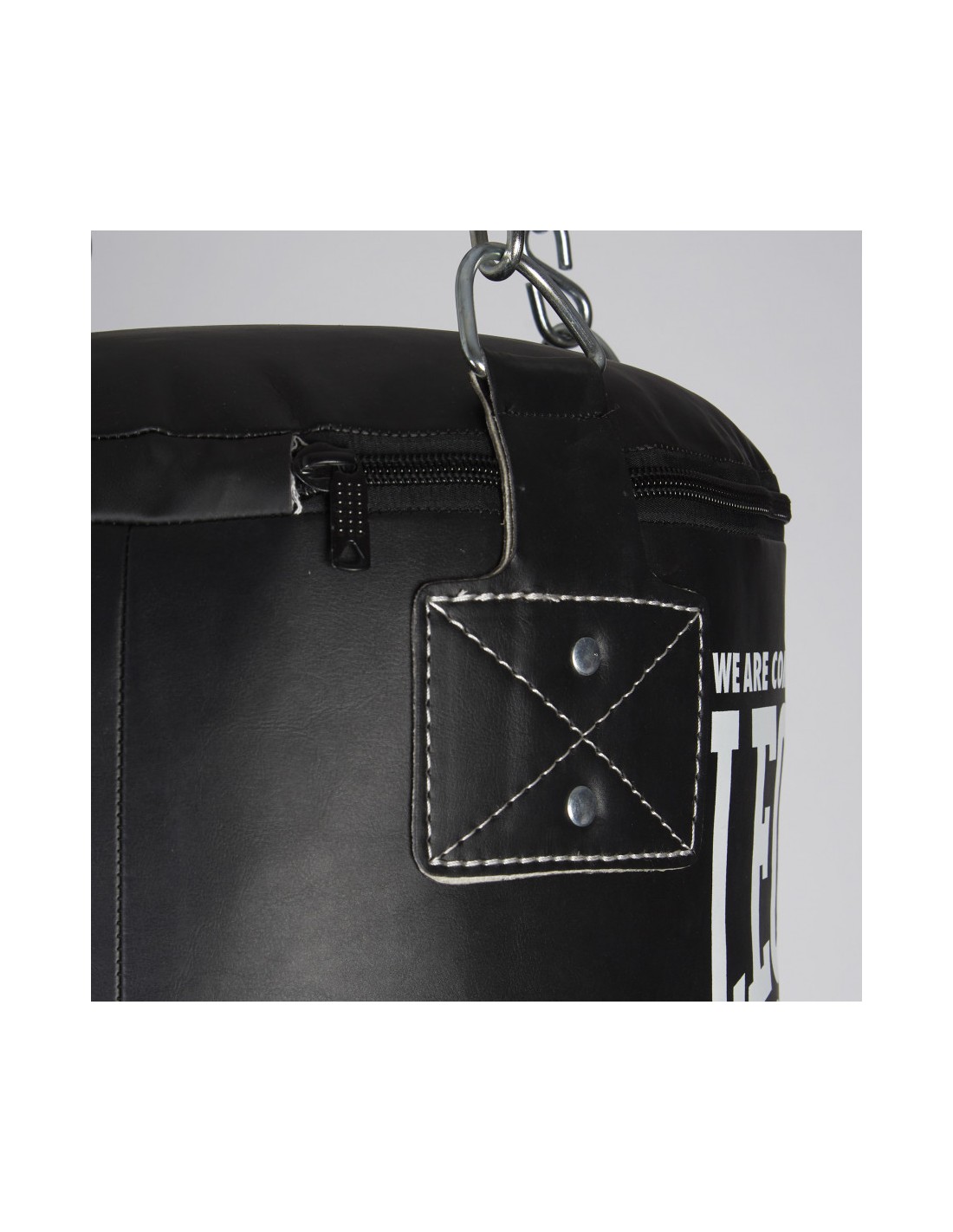 Chaque sac de boxe de Leone1947 est livré rempli. En outre, la chaîne (environ 40cm) et l'anneau rotatif qui les relie et l'anneau pour les suspendre sont toujours inclus. Le support de plafond ou la potence nécessaires doivent être achetés séparément.