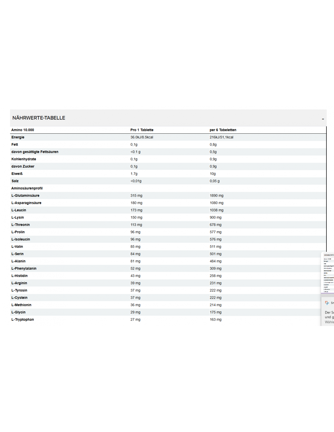240 tablets with 10.000mg amino acids per serving + extra high doses of BCAA amino acids - ideal for muscle building and muscle maintenance!