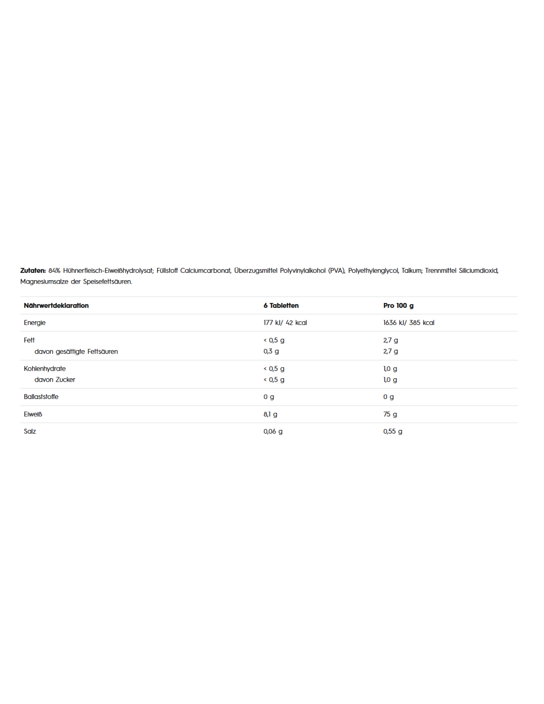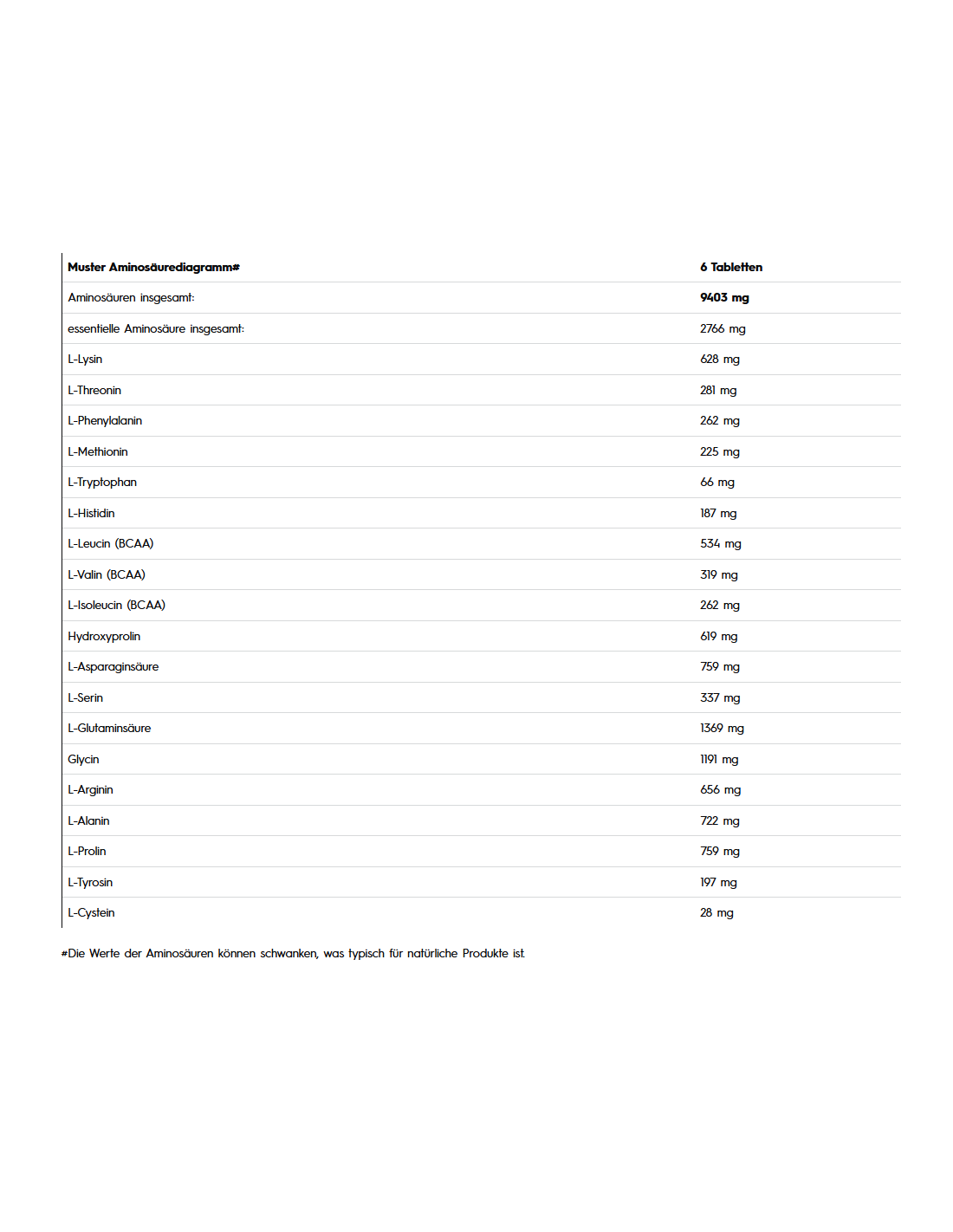 - Dietary supplement in tablet form with amino acids