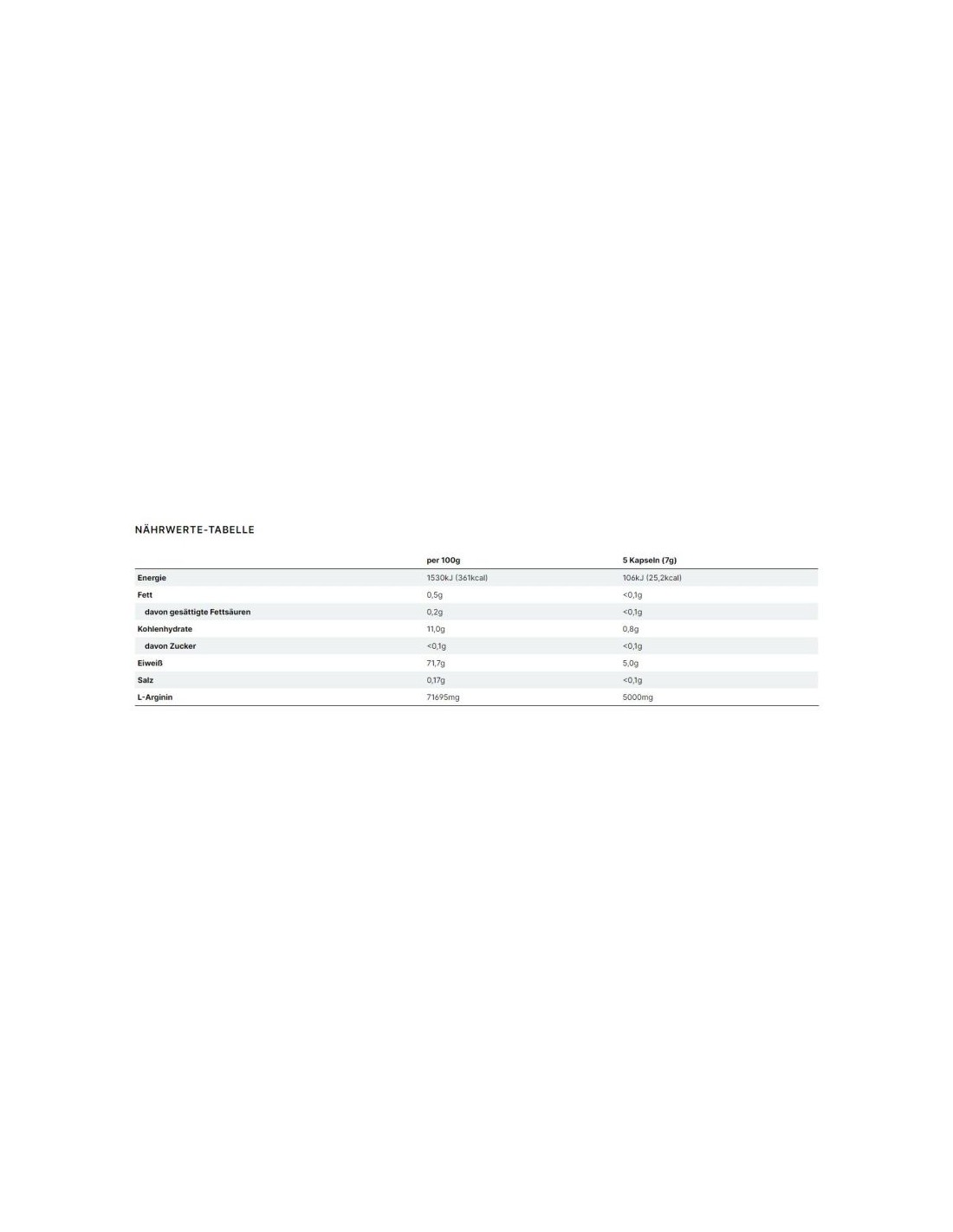 L-Arginin Hydrochlorid, Hydroxpropylmethylcellulose (Kapsel), Trennmittel (Magnesiumsalze von Speisefettsäuren)
