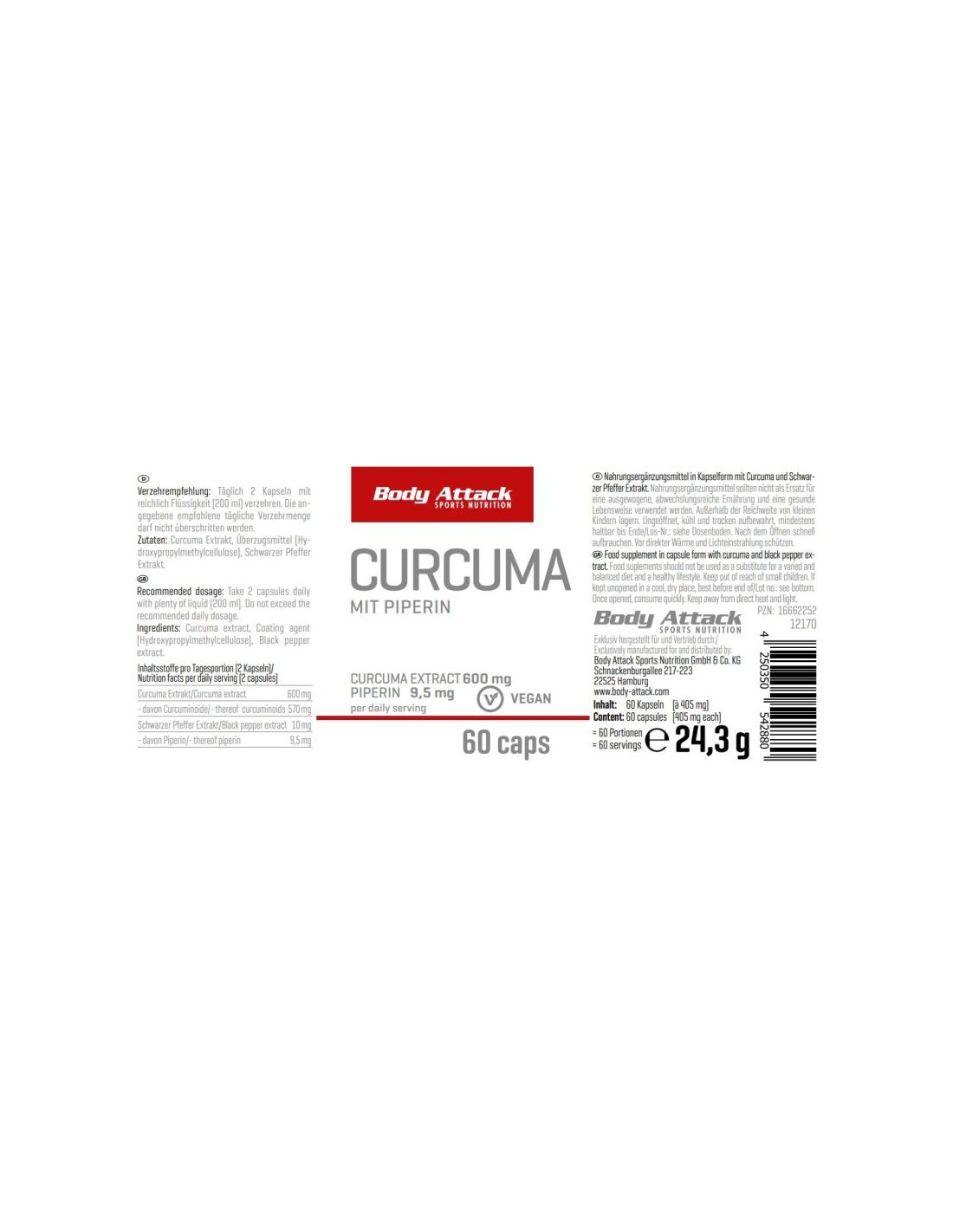 Discover the power of nature with Body Attack Curcuma - your new training partner that not only supports your fitness goals, but also boosts your body in a natural way! With a concentrated daily portion of 600 mg of high-quality curcuma extract, we offer you herbal support that has been specially developed for active athletes.