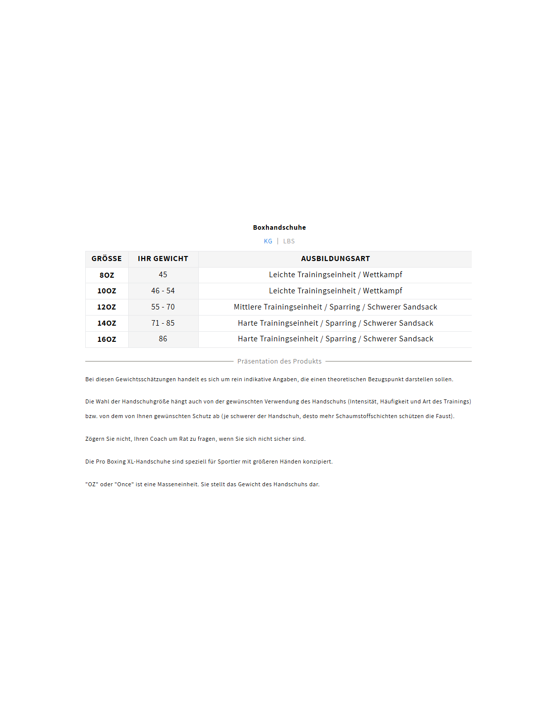 The attached thumb minimizes the risk of injury so that you can concentrate fully on your training. The boxing gloves are available in different weight levels from 10 to 16 OZ and therefore offer the right size for everyone.