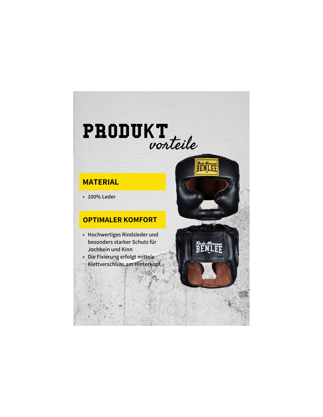 The Benlee Full Face Protection headguard is the ideal companion for all martial arts where reliable protective equipment is essential. The high-quality cowhide leather not only ensures a long service life, but is also comfortable to wear. It is fastened to the back of the head with Velcro so that the head protection fits perfectly and does not slip.
