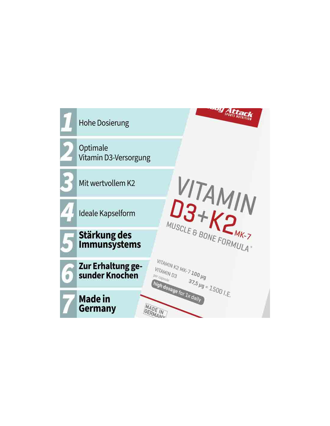 Body Attack Vitamin D3 + K2 30pcs