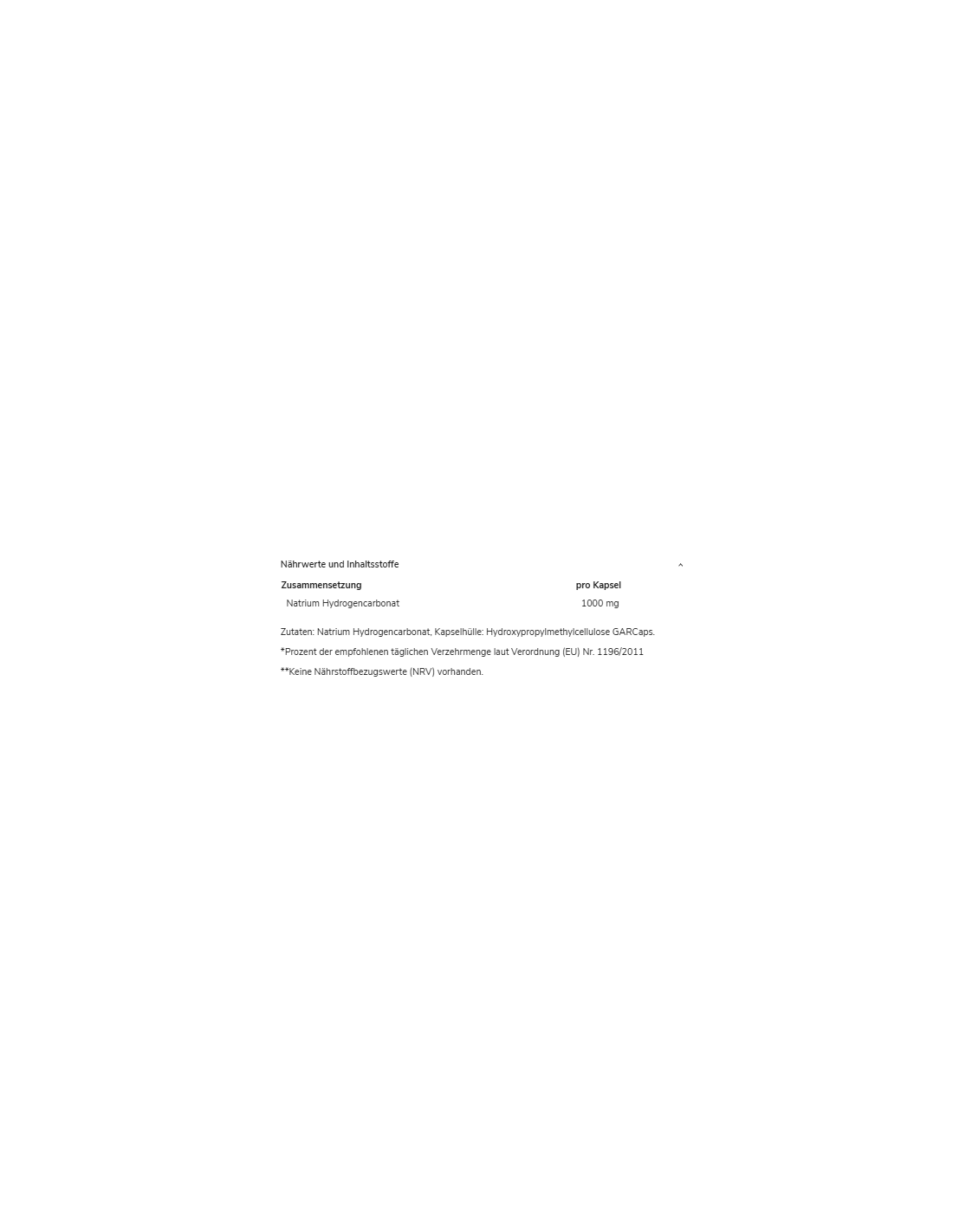 Zutaten: Natrium Hydrogencarbonat, KapselhĂĽlle: Hydroxypropylmethylcellulose GARCaps.