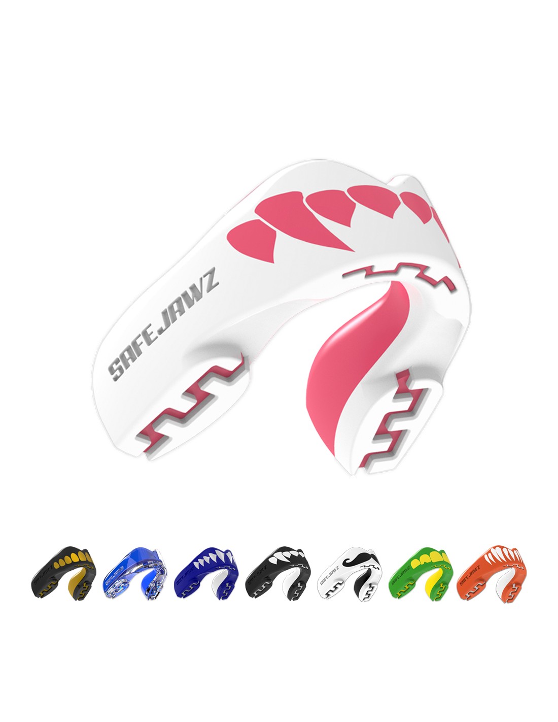 The Safejawz, Extro Series Fangz mouthguard not only impresses with its outstanding protection, but also with its eye-catching design. The Fangz patterns give you a cool and individual look that will make you stand out from the crowd.