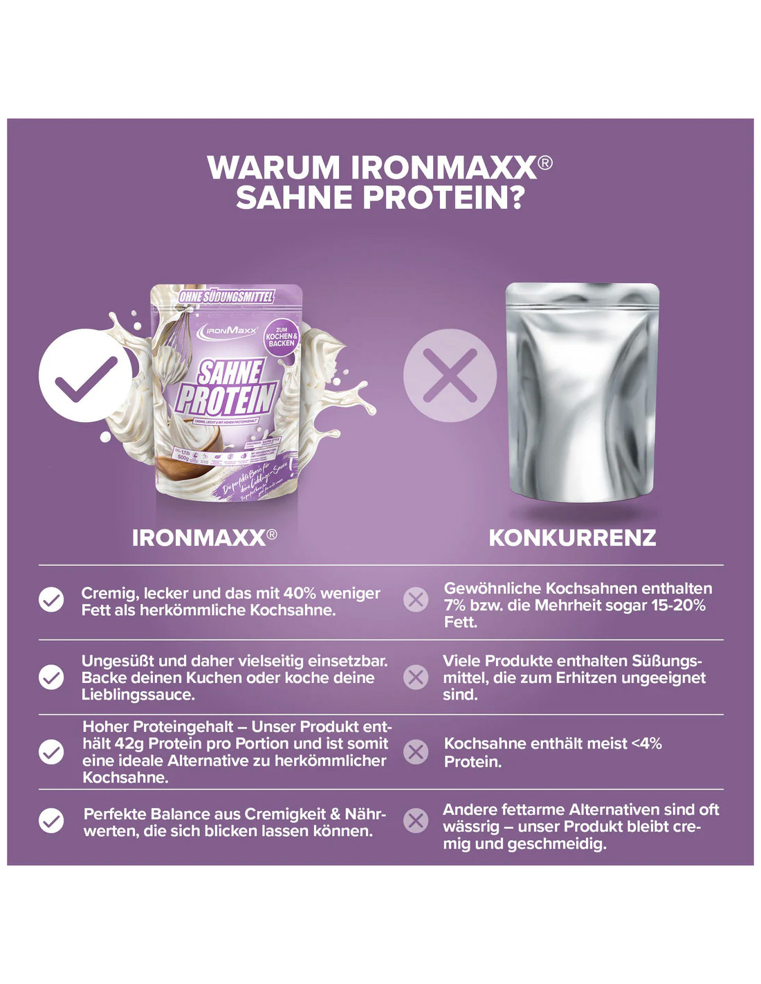 IronMaxx Cream Protein is incredibly versatile. Whether in savory sauces, creamy casseroles, or in baking – it gives your dishes a velvety consistency and noticeably increases their nutritional value. This way, you can easily integrate high-quality protein into your daily diet without sacrificing variety.