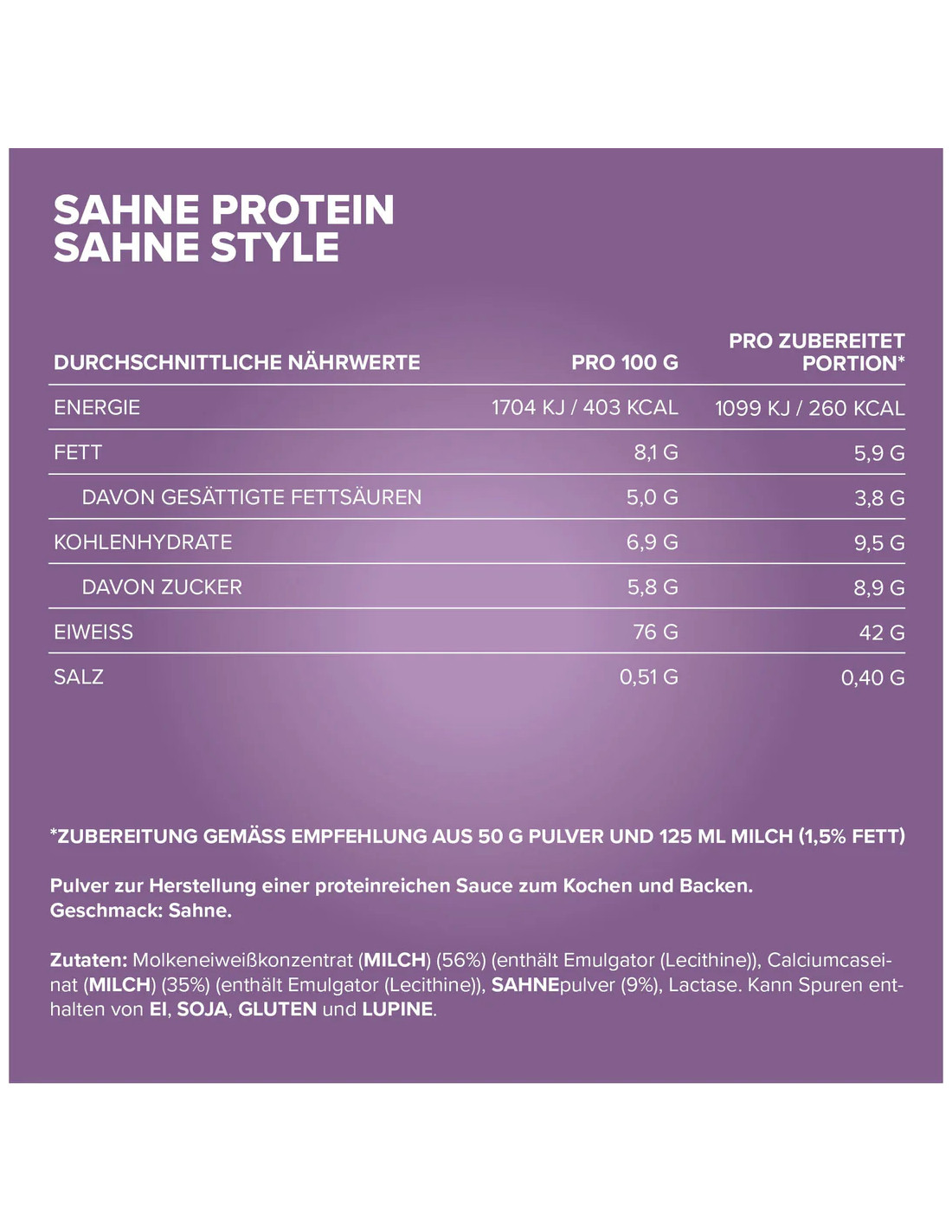 What makes this product so special? It's not just a protein powder – it's your new training partner in the kitchen. The reduced-fat recipe ensures that you absorb up to 40% less fat than with conventional cooking cream, which has 7% fat. This means conscious nutrition without sacrifice. Cream protein also contains no added sugar, so you avoid unnecessary calories while still enjoying full flavor. And if you're lactose intolerant, you don't need to worry: The added lactase allows you to enjoy the creamy taste without any unpleasant side effects.