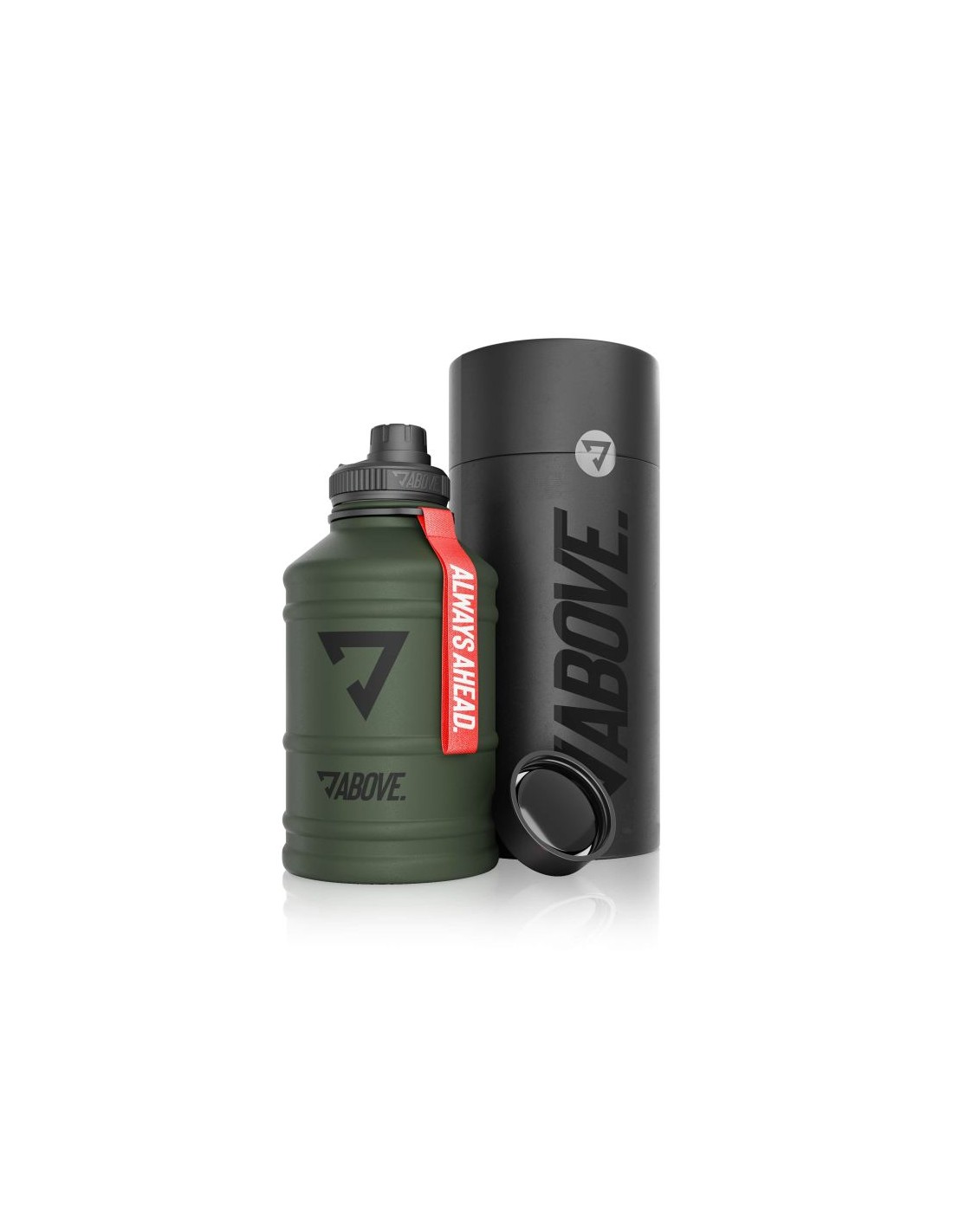 The ABOVE. 2.2L Water Jug has no handle and may need to be held with both hands to drink from it. The practical carrying strap made of robust polyester makes it easy to transport.