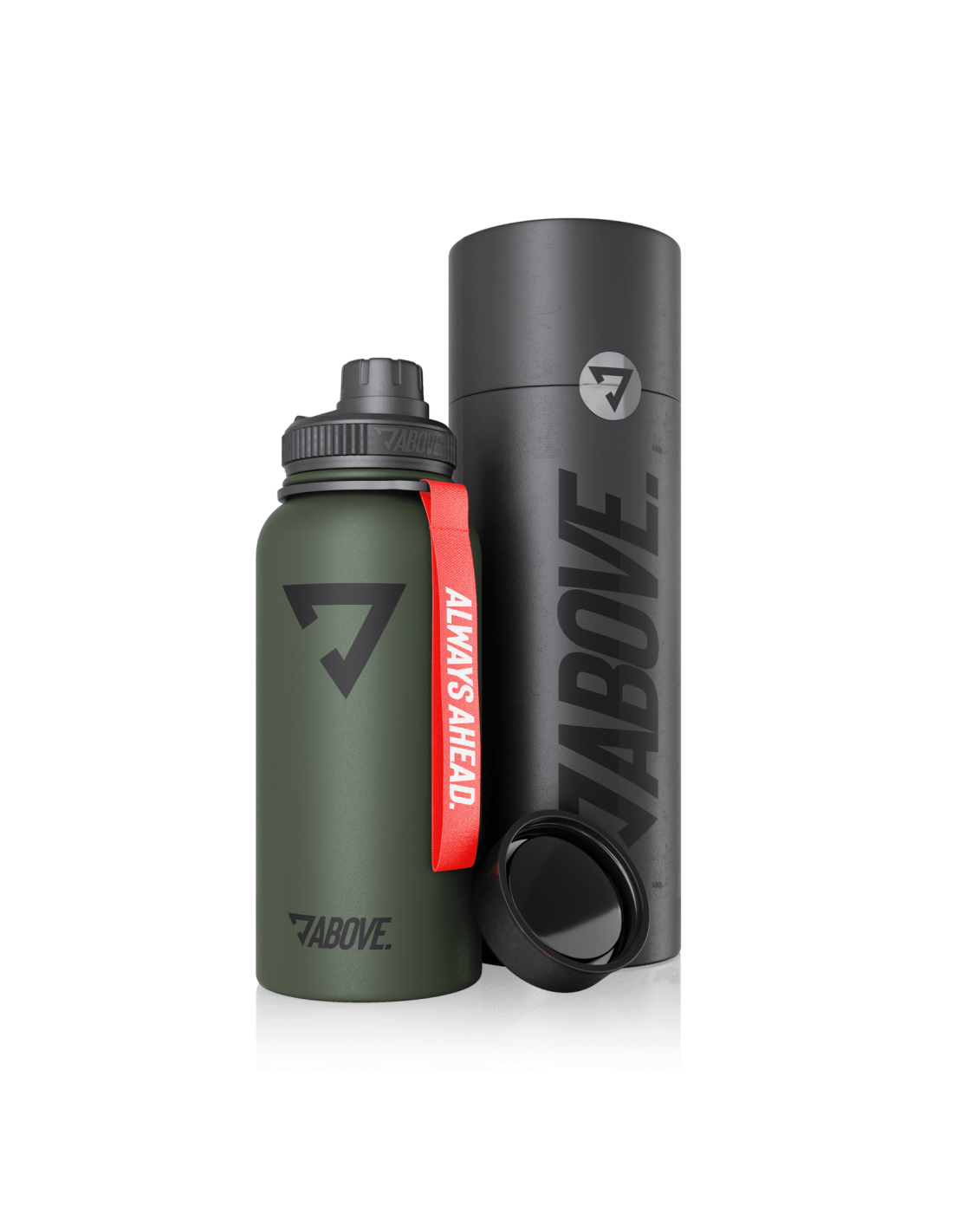 The stainless steel drinking bottle has a capacity of 950 ML and keeps drinks hot or refreshingly cool for a long time thanks to the double-walled insulation.