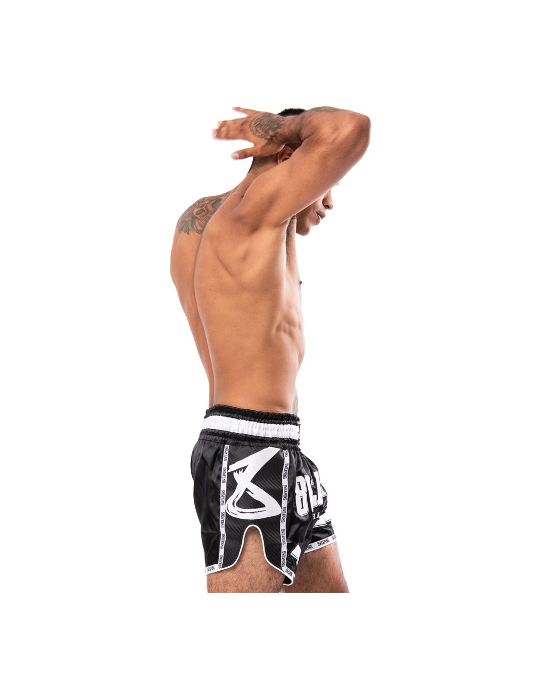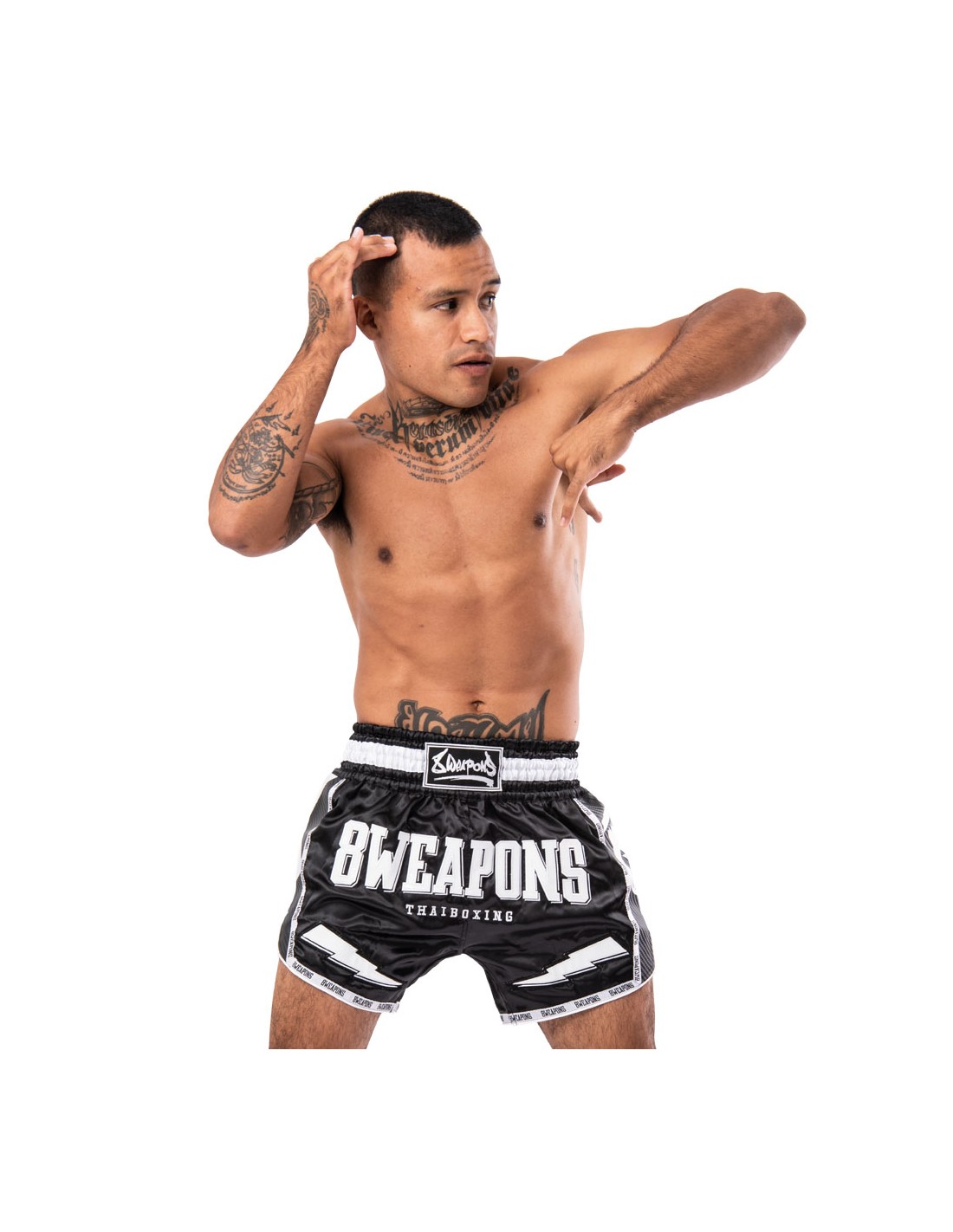 The 8 WEAPONS Carbon Black Muay Thai Shorts are the ideal choice for anyone looking for modern and stylish Thai boxing shorts. These shorts are the latest innovation in the popular 8 WEAPONS Carbon Black collection and impress with a stylish imitation leather logo on the front.