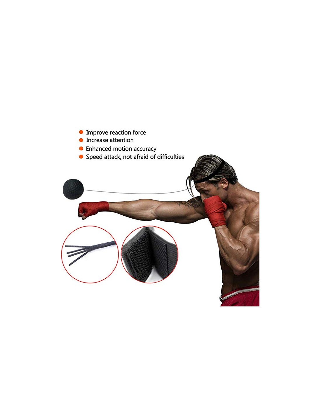 Note: A new learner should slow down the speed and force of the tempo and watch out for rebounds to avoid injury! To ensure a more stable condition of the headband, we recommend that you wear headgear when using a reflex boxing ball.