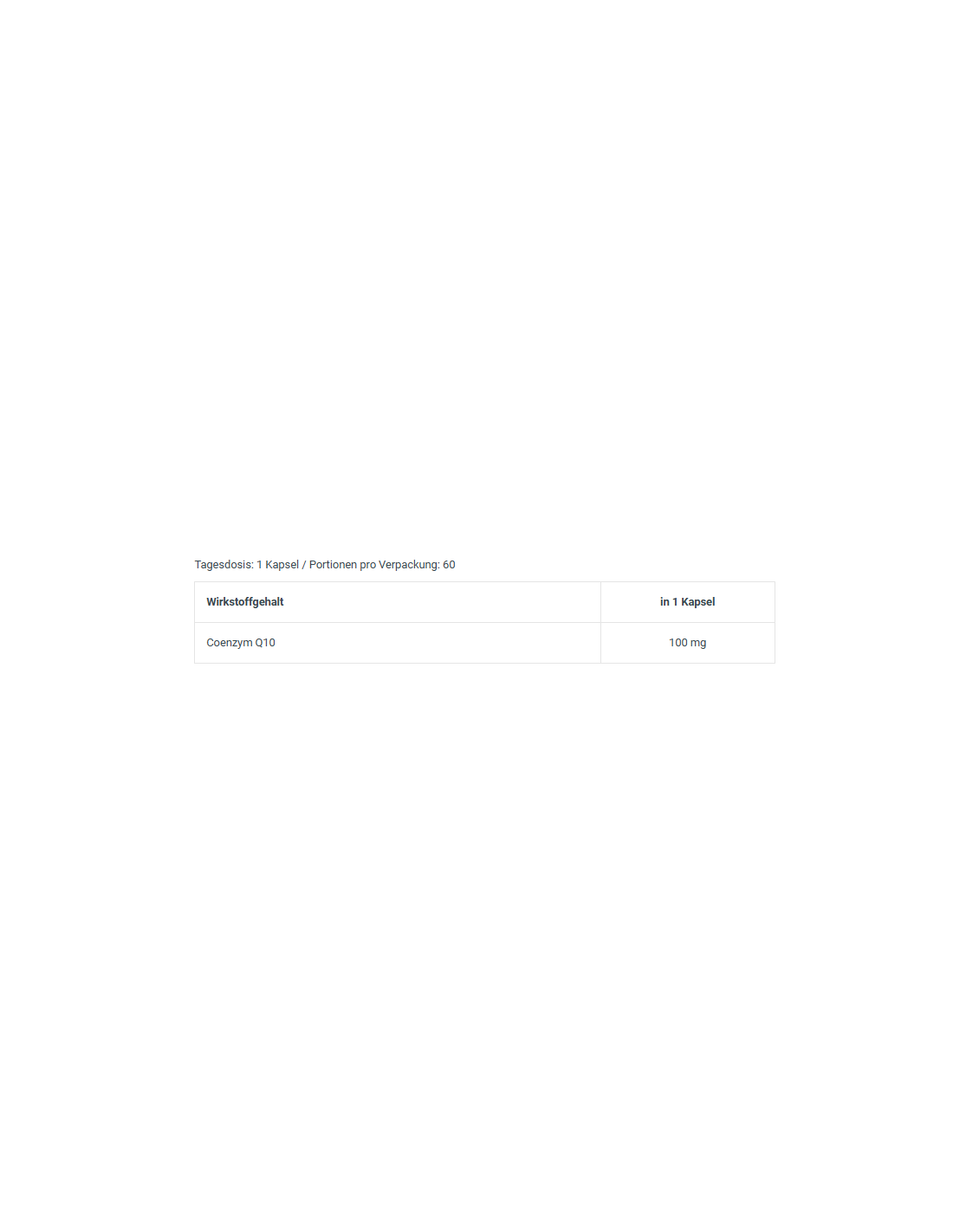 Our coenzyme Q10 capsules contain a high quality of natural Q10, which promotes your energy production in the cellular power plants. With 100mg Q10 per capsule, you can cover your needs and increase your physical performance. Your vitality is supported by the natural sources of this food supplement to accompany you in your active lifestyle.