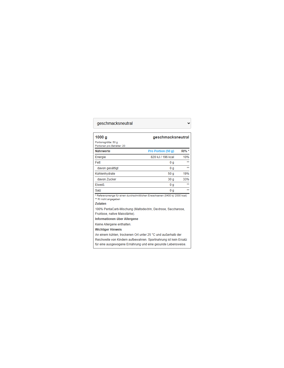 Maltodextrin, Dextrose, Saccharose, Fructose, Maisstärke.