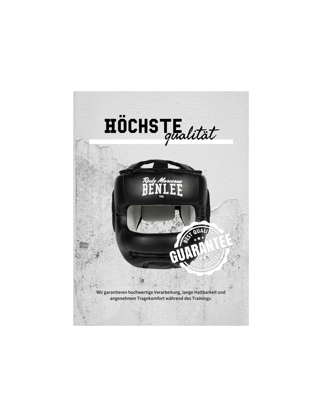 La protezione per la testa BENLEE offre una protezione professionale durante la boxe e quindi migliora la sicurezza di chi la indossa. Grazie all'apertura extra larga, puoi respirare più facilmente e quindi rimanere in forma più a lungo. La chiusura in velcro regolabile sul retro assicura una vestibilità perfetta e il massimo comfort.