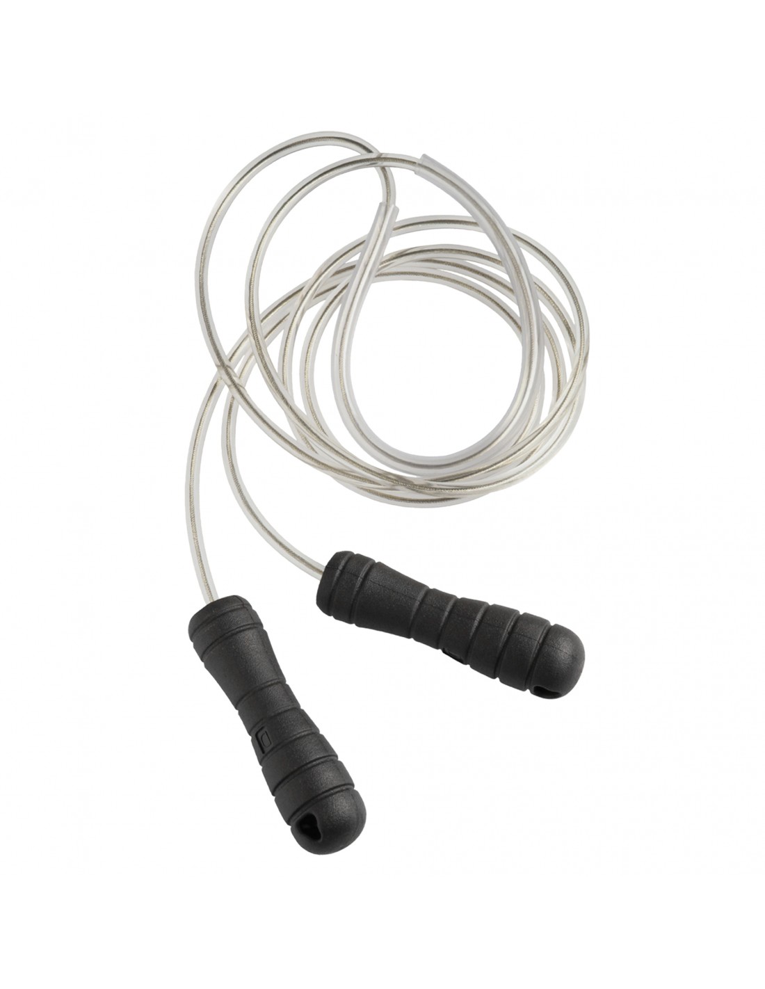 Il design trasparente della corda da salto la rende un vero e proprio richiamo visivo in palestra o a casa. Il materiale - cavo d'acciaio con rivestimento in nylon - la rende inoltre molto facile da pulire e igienica.