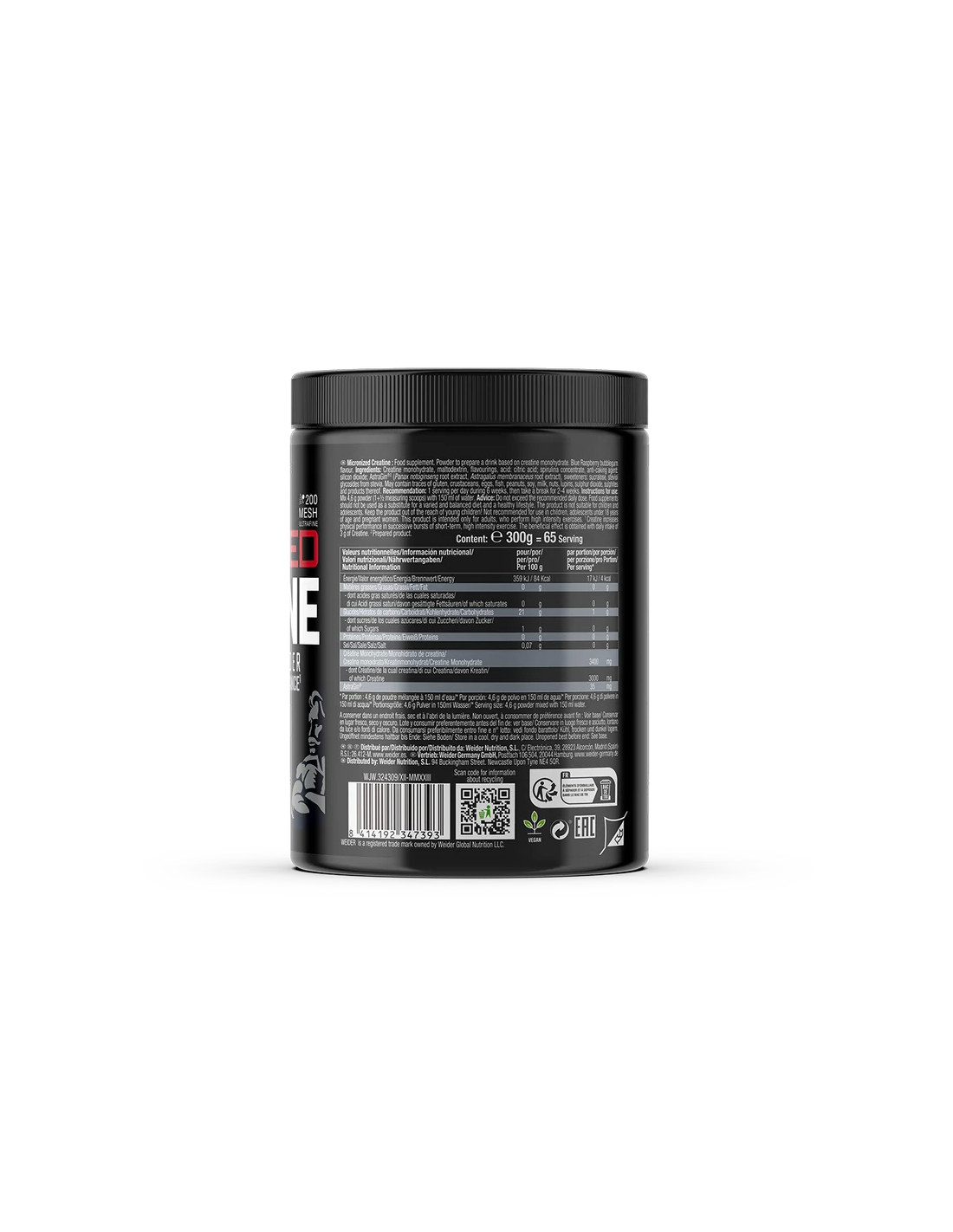 Affidatevi alla qualità Weider, un nome che è sinonimo di eccellenza e sicurezza. La nostra creatina micronizzata ha un eccellente profilo di sicurezza ed è priva di effetti collaterali indesiderati se assunta nel dosaggio raccomandato. Questo ti consente di allenarti senza preoccupazioni e di concentrarti completamente sui tuoi progressi.