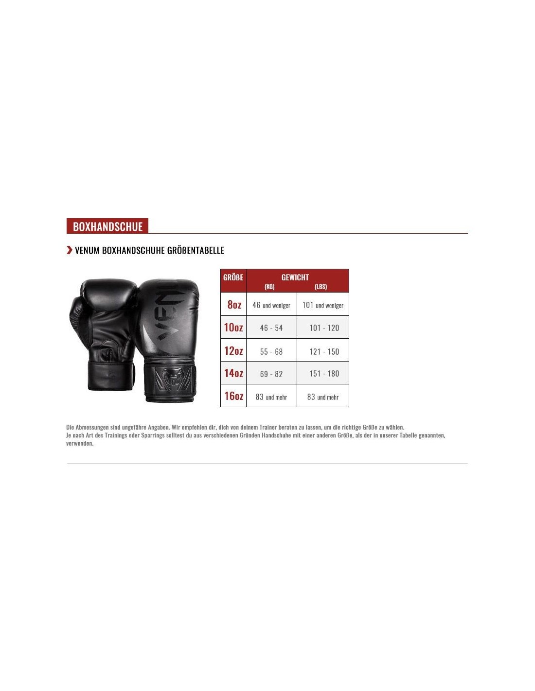 Un guanto da boxe più pesante dello stesso modello è solitamente leggermente più grande.