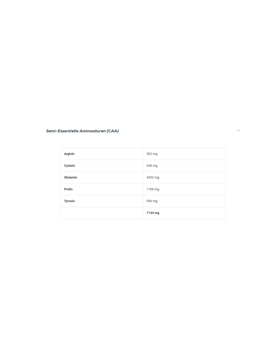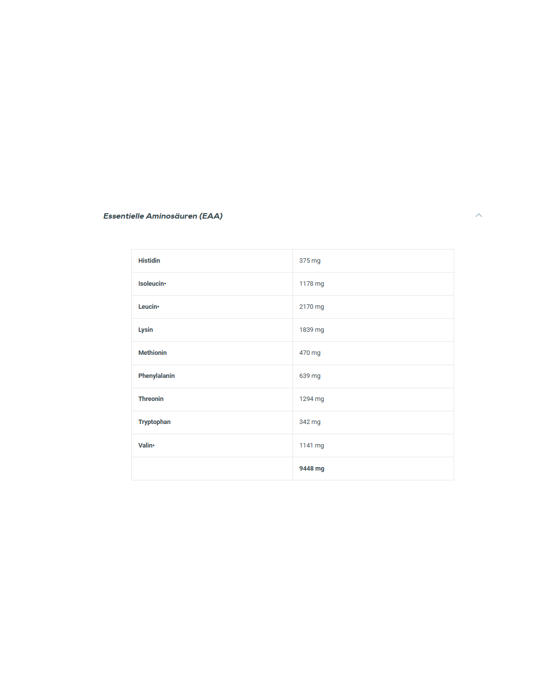 Molkenproteinisolat (Milch) {Molkenproteinisolat (Milchh), Emulgator [Lecithine (Soja)]} 84%, L-Glutamin 5,5%, Kokosfett-Zubereitung [teilweise gehärtetes Kokosfett, MagerMilchpulver, Emulgatoren (E471, E472a), Glukosesirup, Zucker, Milcheiweiß, Stabilisator (Kaliumphosphate)], Instantkaffee 2,4%, Aromen, Verdickungsmittel (Cellulosegummi, Xanthan), Farbstoff (Ammoniak-Zuckerkulör), Trennmittel (Siliciumdioxid), Speisesalz, wasserfreies Koffein, L-Leucin1 0,2%, Süßungsmittel (Sucralose), L-Isoleucin1 0,1%, L-Valin1 0,1%. 1BCAA: verzweigtkettige Aminosäuren. Hergestellt in einem Betrieb, in dem Eier, Erdnüsse, Schalenfrüchte, Sellerie, Fisch, Krebstiere und Schwefeldioxid bearbeitet werden.