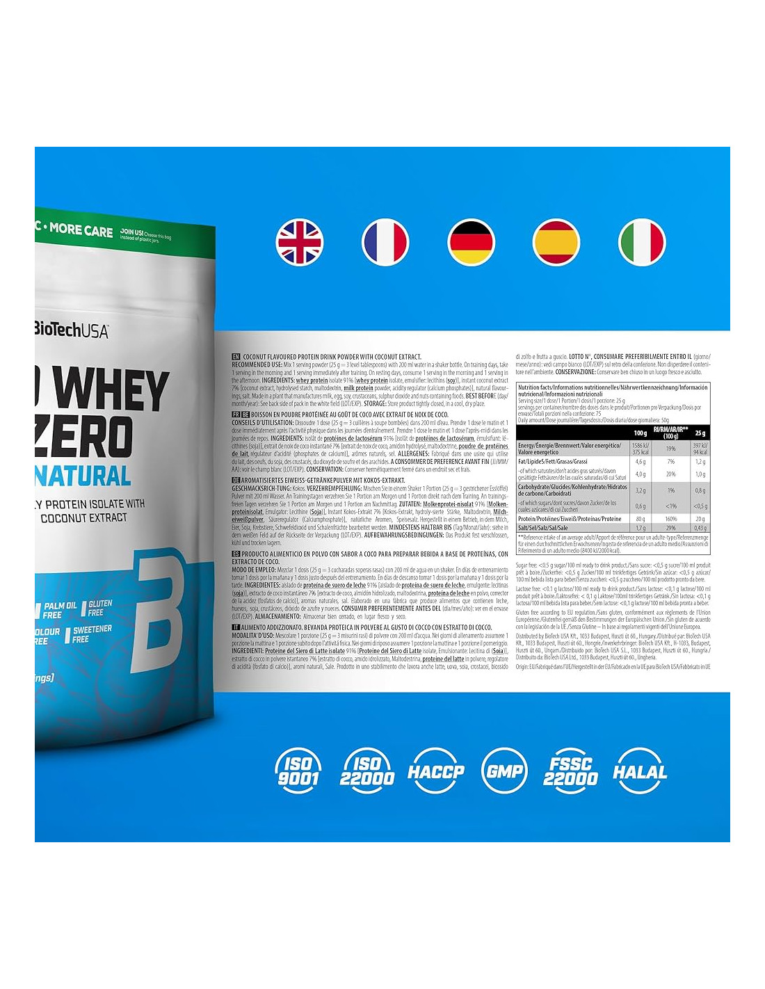 Il prodotto non si chiama Natural solo per gli aromi, ma anche perché non contiene coloranti o dolcificanti e, come tutte le polveri proteiche Iso Whey Zero, è privo di glutine, zucchero e lattosio.