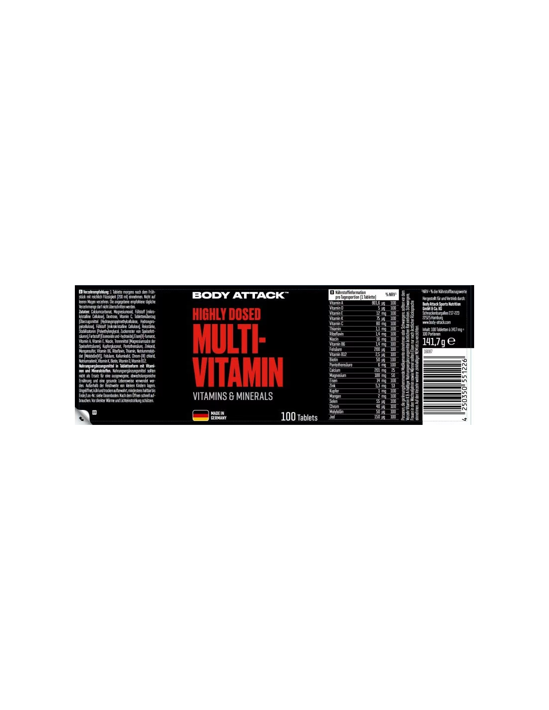 Body Attack Con il nostro Multi Vitamin Pack avrai l'apporto completo di cui il tuo corpo ha bisogno per rimanere in forma e vitale anche nei momenti di stress. Le 26 importanti vitamine e minerali ti aiutano a migliorare le tue prestazioni e a prevenire efficacemente le carenze!