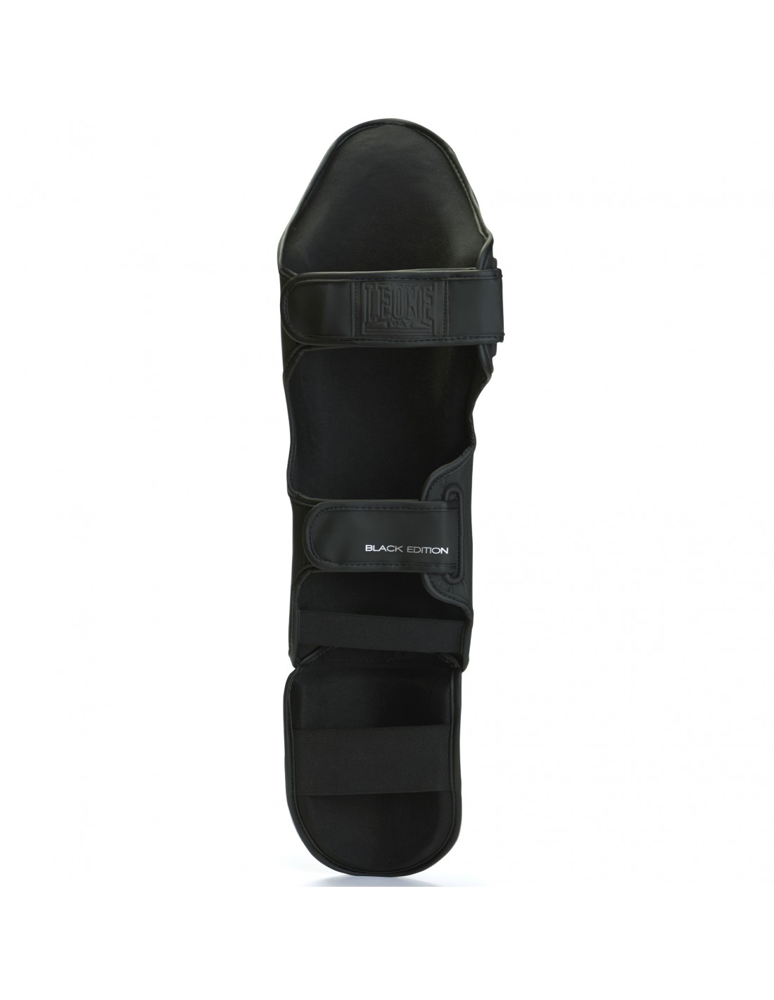 La Black Edition del Leone 1947 è completata dai parastinchi realizzati in nero opaco con dettagli a contrasto in nero lucido e argento. Il disegno anatomico di questa protezione è stato studiato per avvolgere i muscoli della gamba e della tibia, prestando particolare attenzione alla zona della tibia e del collo del piede. La protezione aggiuntiva in gel garantisce un'eccellente assorbenza dei punzoni. Inoltre, questo nuovo parastinco presenta una fodera interna ipoallergenica e traspirante, chiusure in velcro e tessuto elastico nella parte inferiore del piede per garantire stabilità e comfort.
